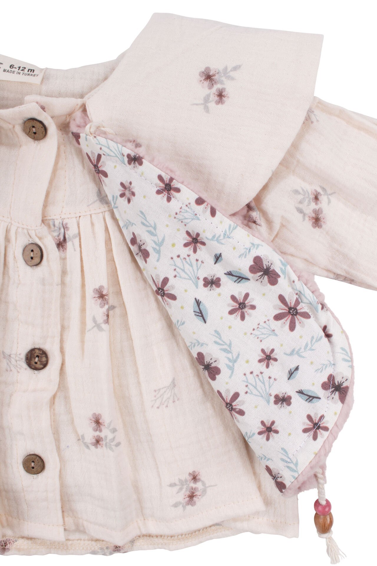 Ekru renkte müslin gömlek ve pembe tonlarda peluş yelek ile tamamlanan bu üçlü takım, yumuşak dokuların bir araya geldiği özenli bir tasarım sunar. Müslin gömleğin hafif ve doğal yapısı, takıma ferah bir duruş kazandırırken peluş yelek detayı ürüne sıcak ve lüks bir görünüm katar. Renk geçişleri, takımın genel formunda dengeli ve şık bir bütünlük oluşturur.