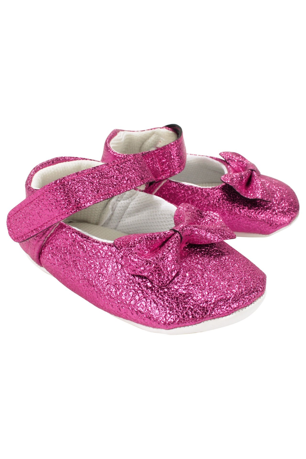 Kız Bebek Fuşya Pudra Parlak Fiyonklu Babet Ayakkabı