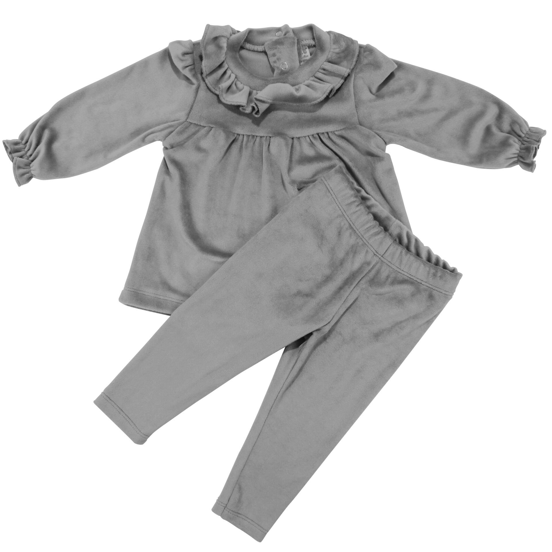 Kız Bebek Gri Fırfırlı Kadife 2'li Takım