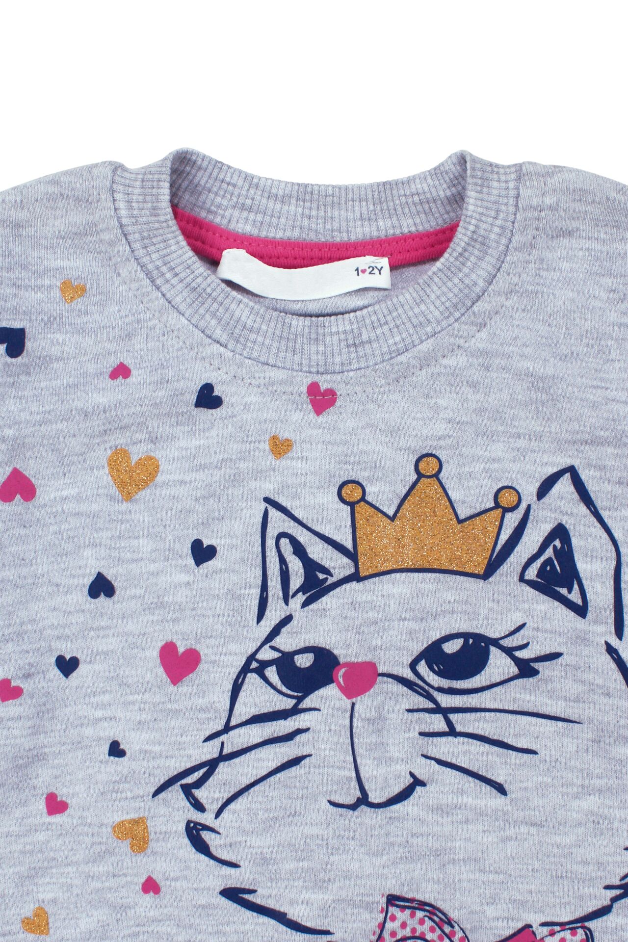 Kız Bebek Gri Laci Kedi Baskılı 2'li Takım