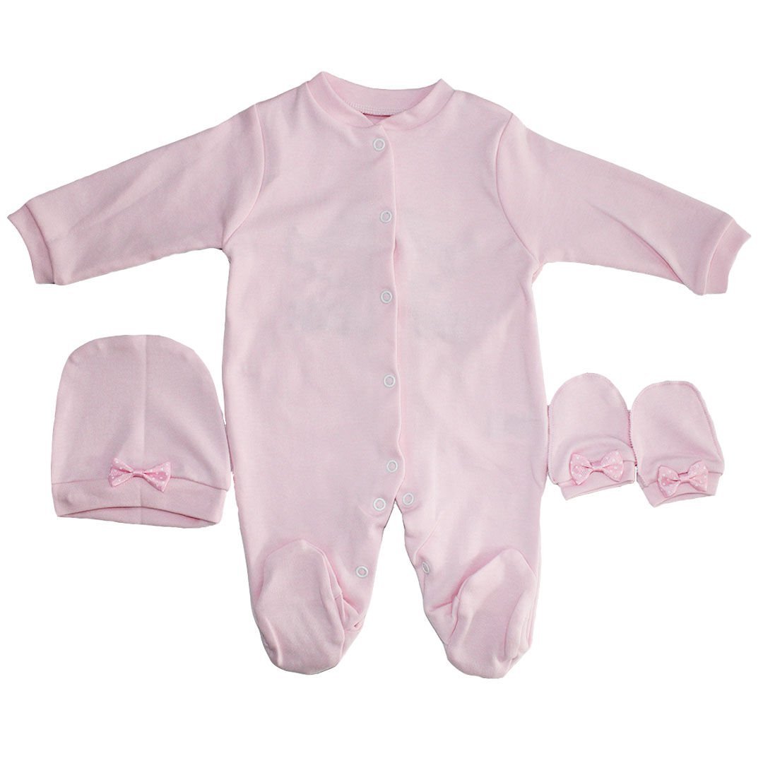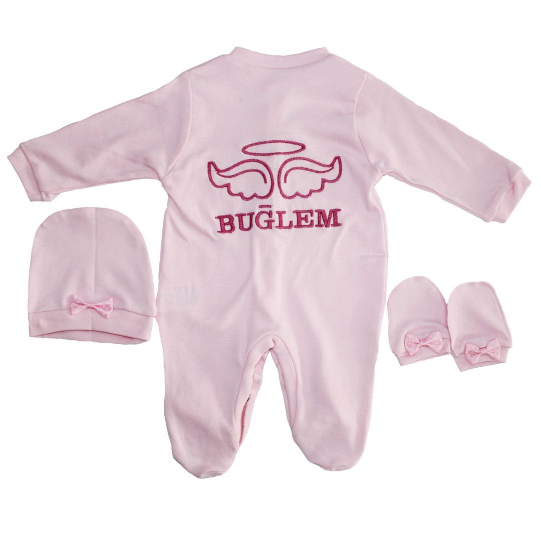 Kız Bebek İsme Özel Pembe Nakışlı Bereli Eldivenli Pembe Tulum