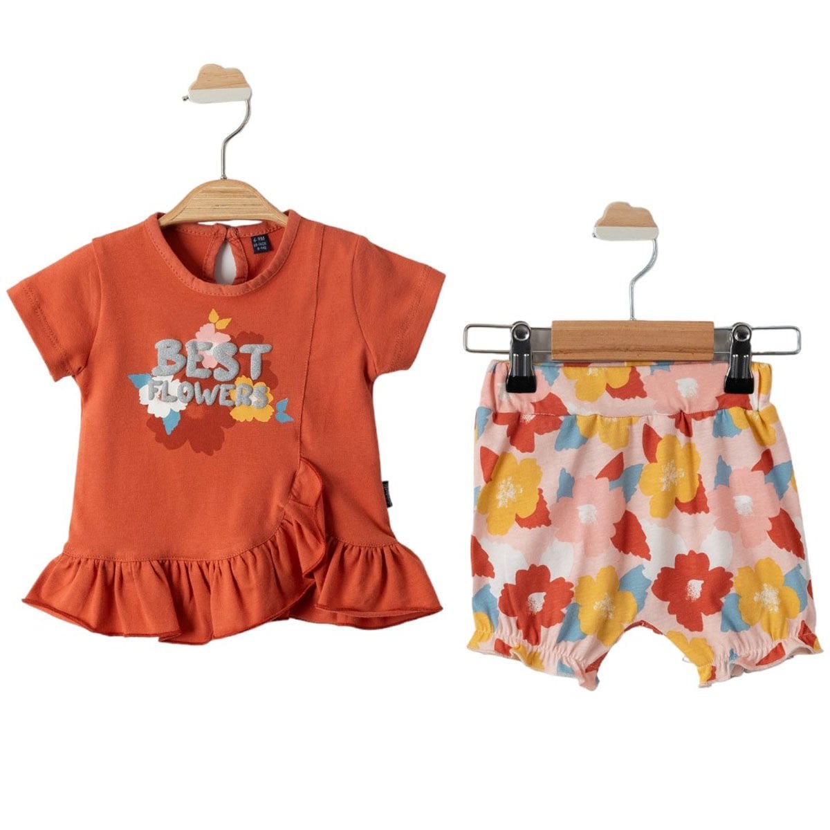 Kız Bebek Kiremit Best Flowers Baskılı Renkli Şortlu 2'li Takım