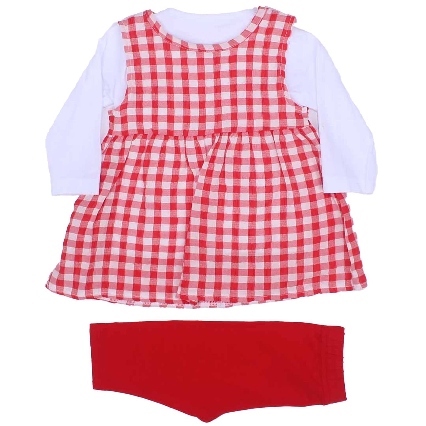 Kız Bebek Kırmızı Ekoseli Gofre 3'lü Takım