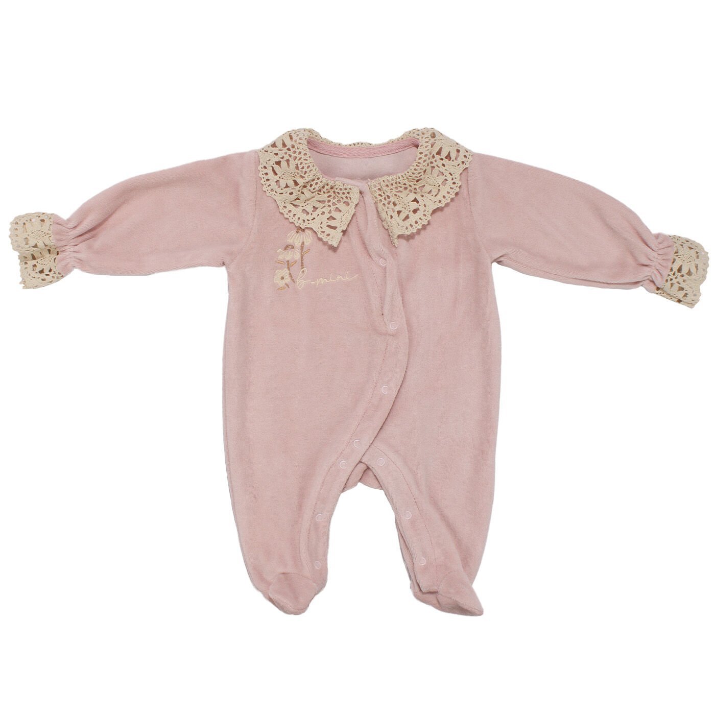 Kız Bebek Lila Dantelli Yakalı Kadife Çıtçıtlı Tulum