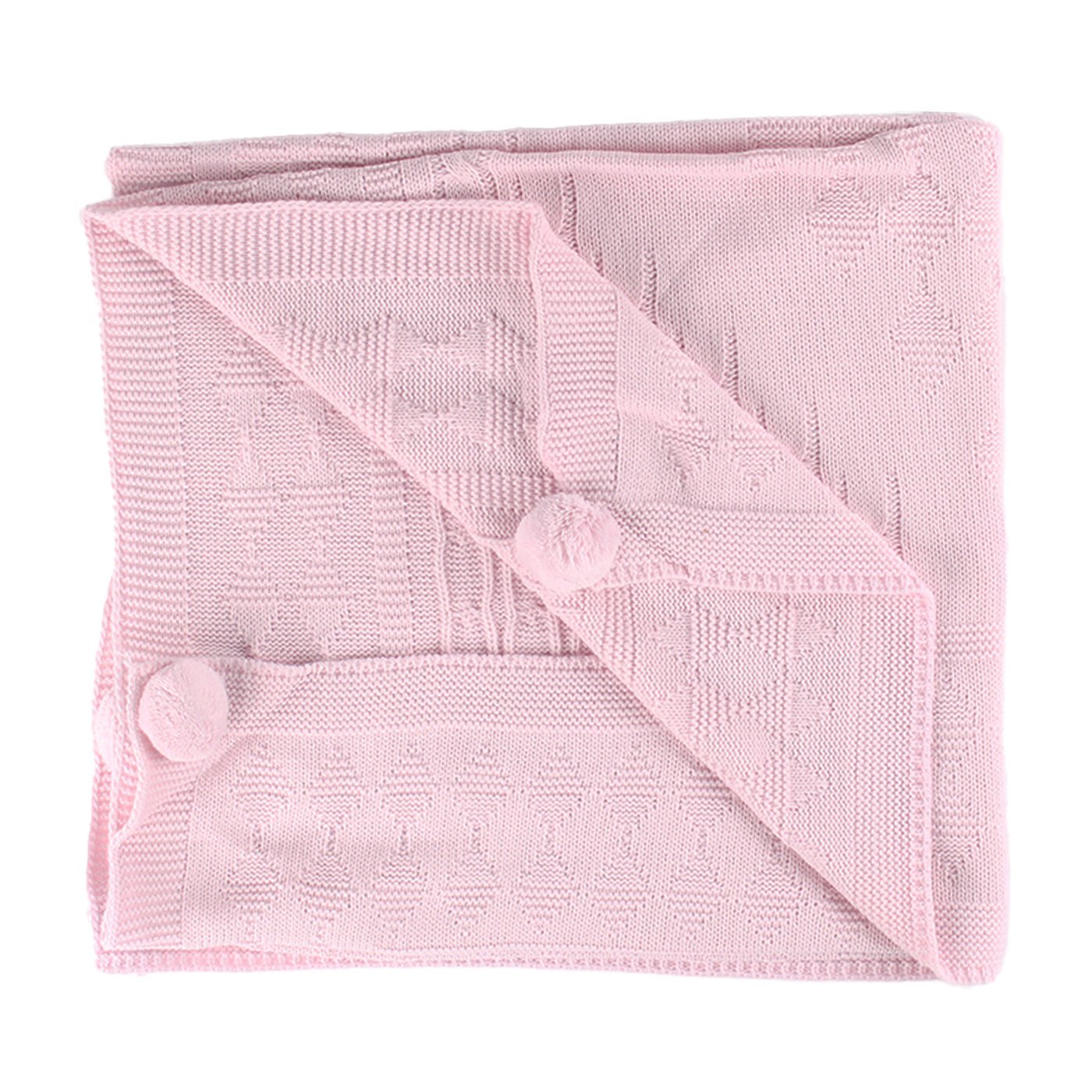 Kız Bebek Pembe Baklavalı Örgülü Desenli Triko Battaniye 80x90