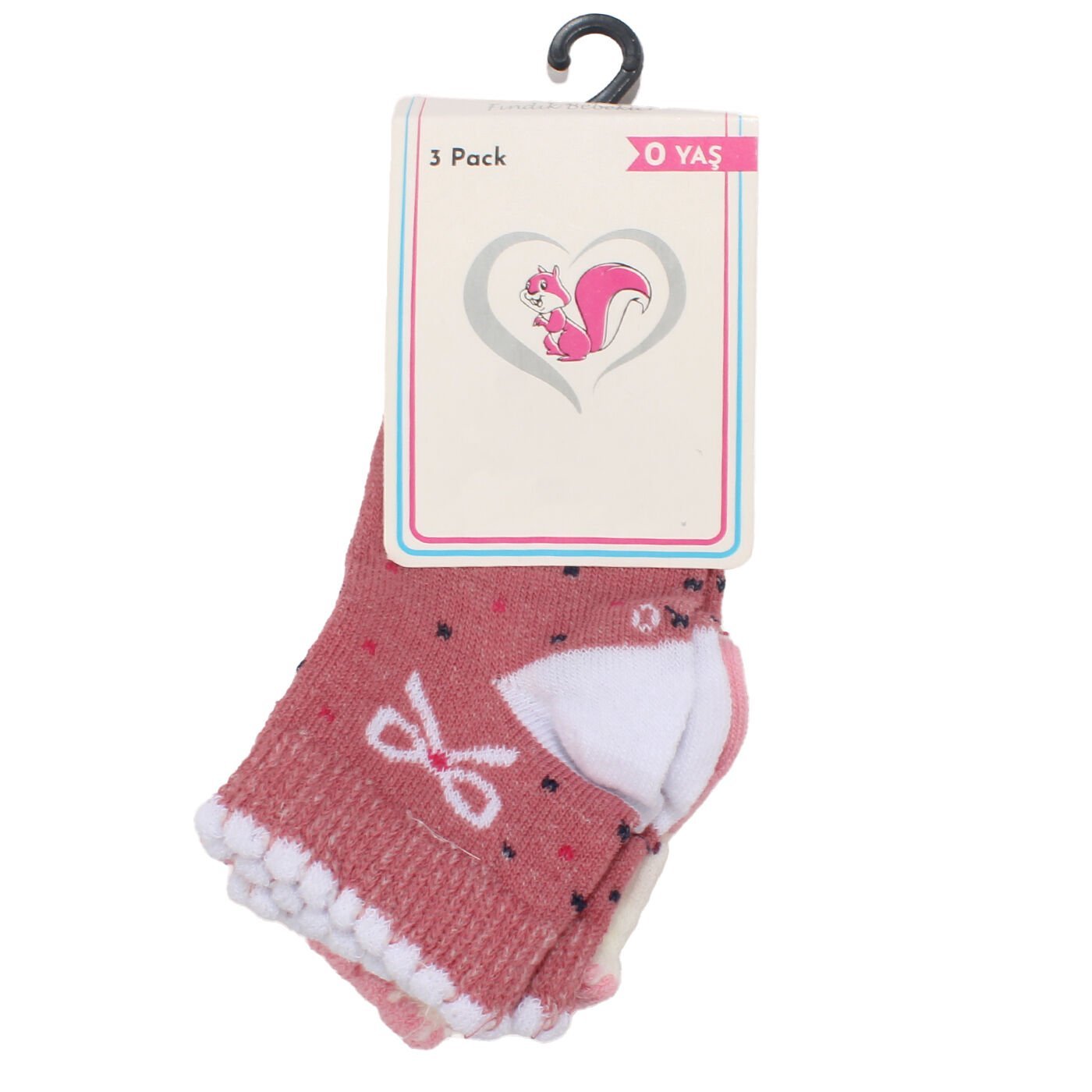 Kız Bebek Pembe Beyaz Bordo Gri 3'lü Çorap Seti 0-6 Ay