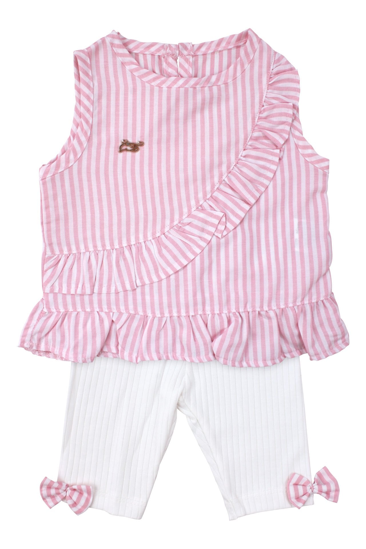 Kız Bebek Pembe Beyaz Çizgili Fırfırlı 2'li Takım