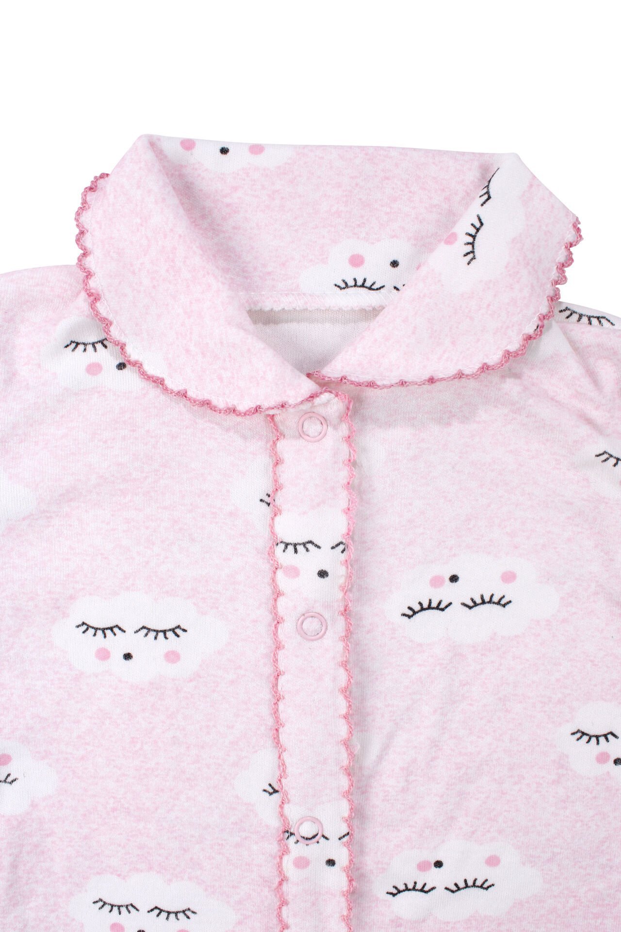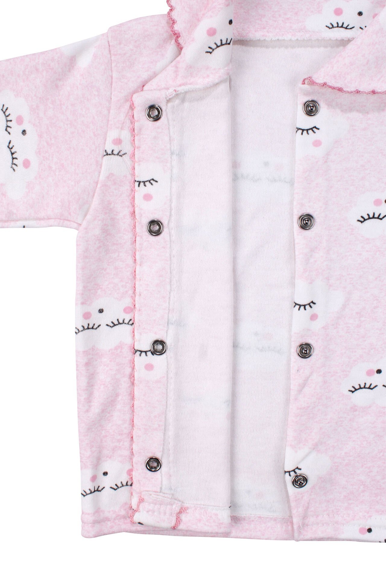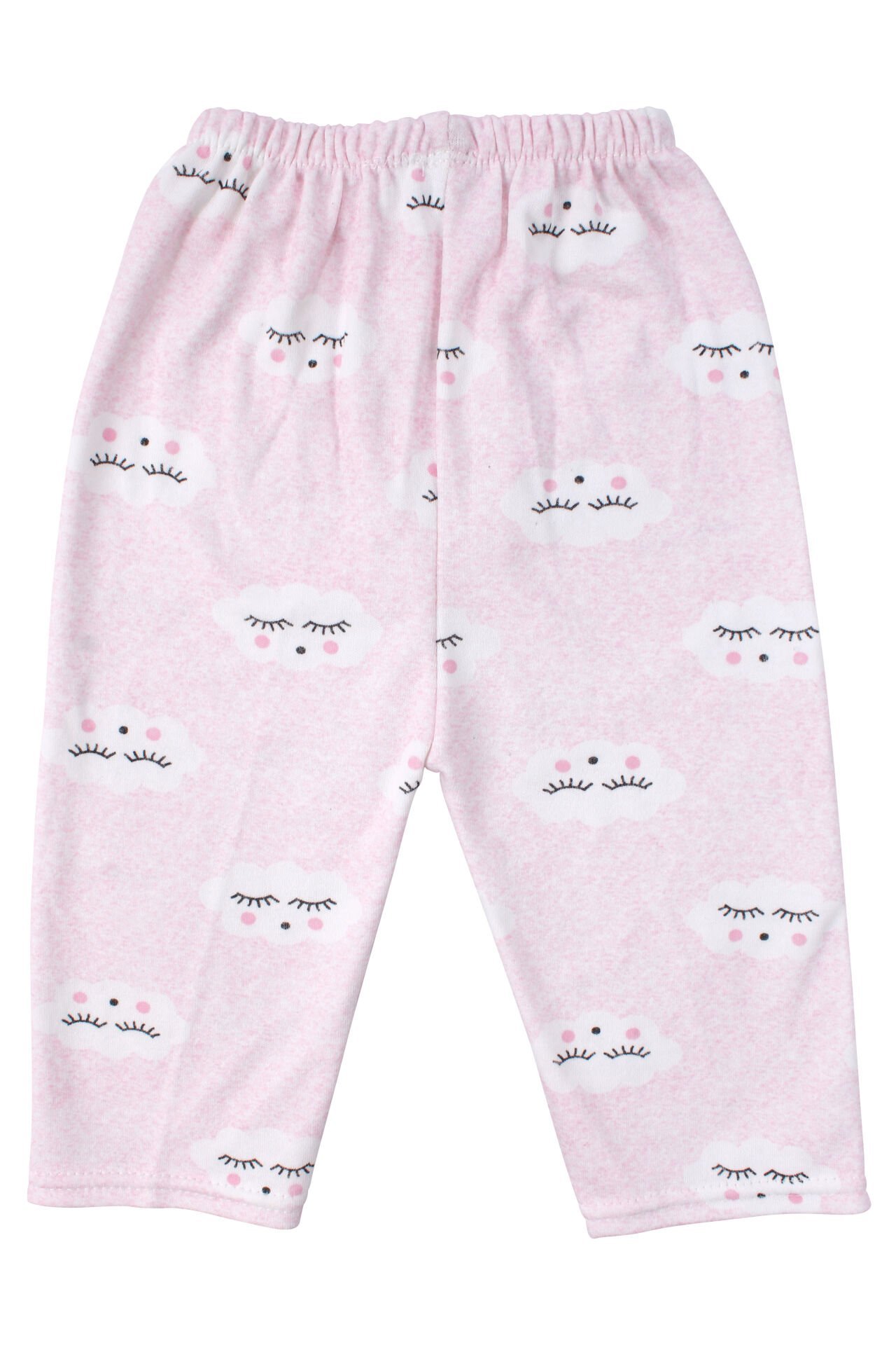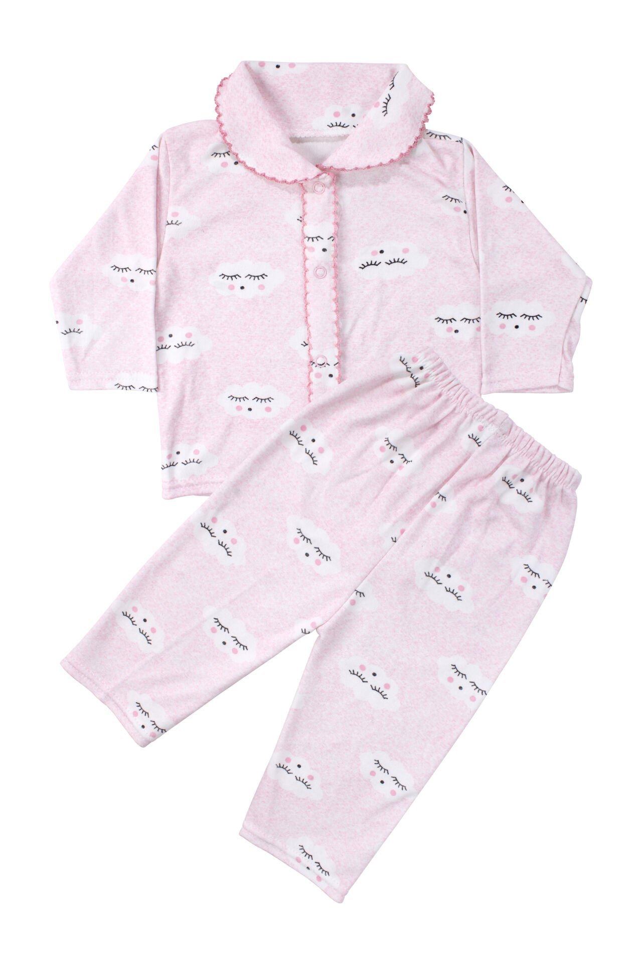 Kız Bebek Pembe Bulut Desenli Biyeli Çıtçıtlı Pijama Takımı 0-3 Ay