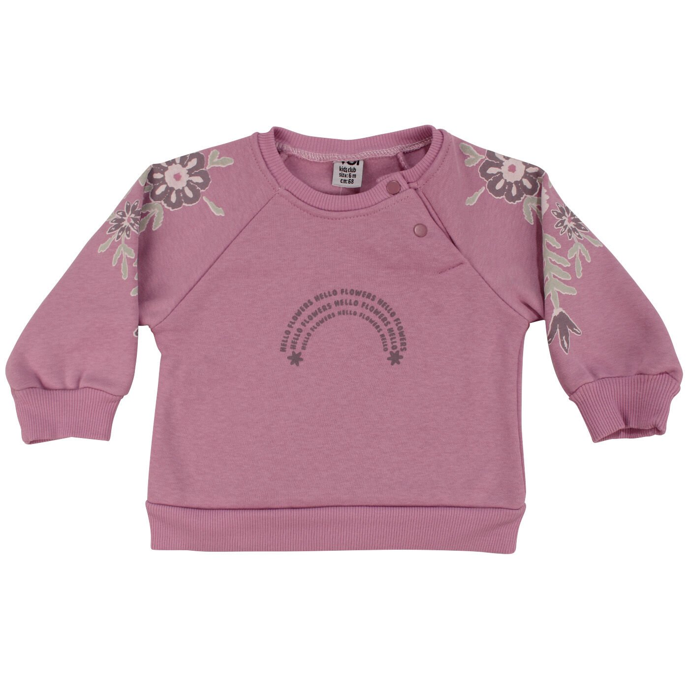 Minik kızlar için tasarlanmış Kız Bebek Pembe Hello Flowers Yazılı Kolları Çiçek Baskılı Üç İp İkili Takım, hem şık hem rahat bir günlük kıyafet seçeneğidir. Yumuşak ve esnek üç ip kumaşı, bebeğinizin hareket özgürlüğünü kısıtlamadan maksimum konfor sağlar.