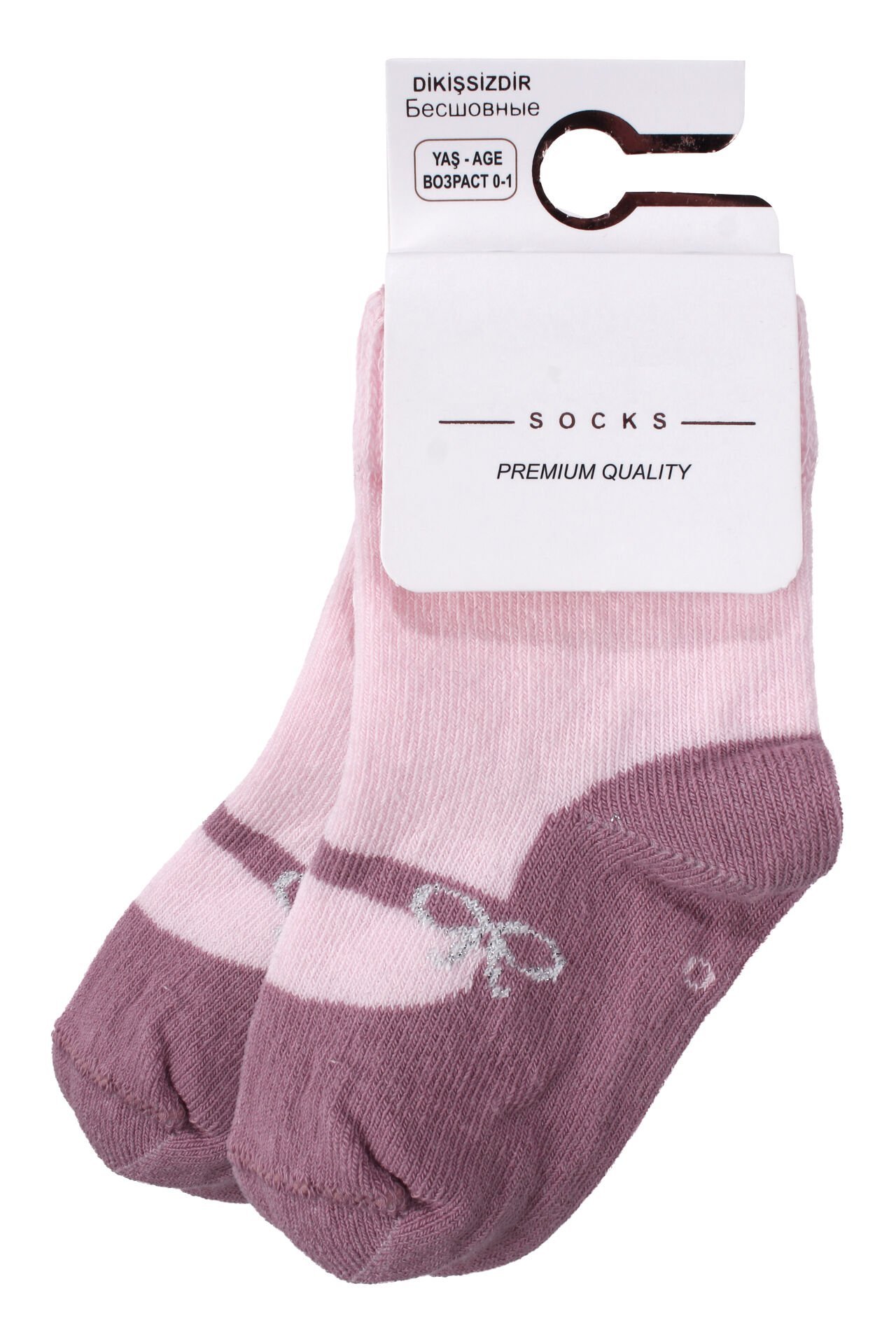 Kız Bebek Pembe Mor Babet Desenli Çorap 0-12 Ay