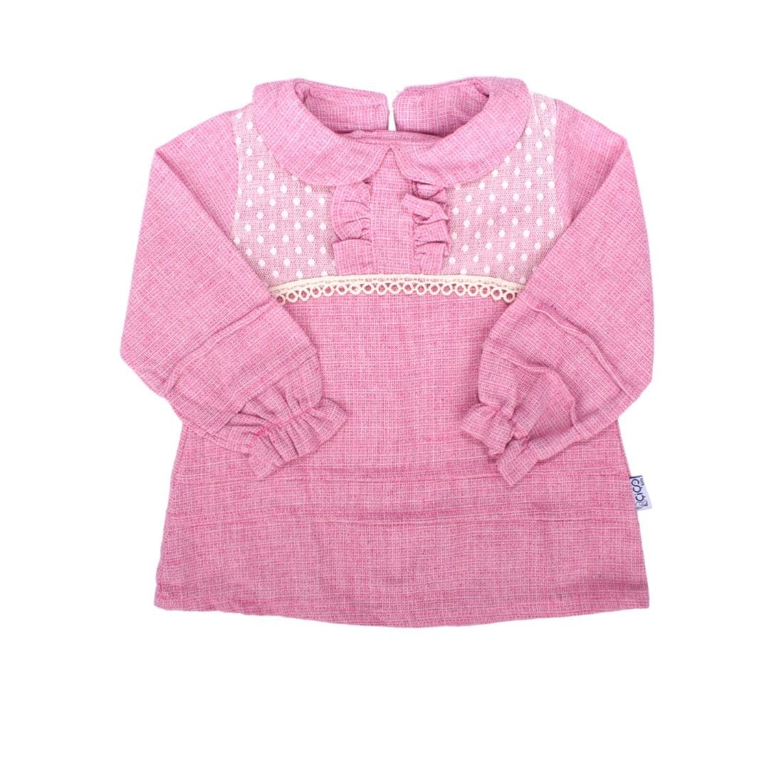 Kız Bebek Pembe Önü Fırfırlı Güpürlü Elbise