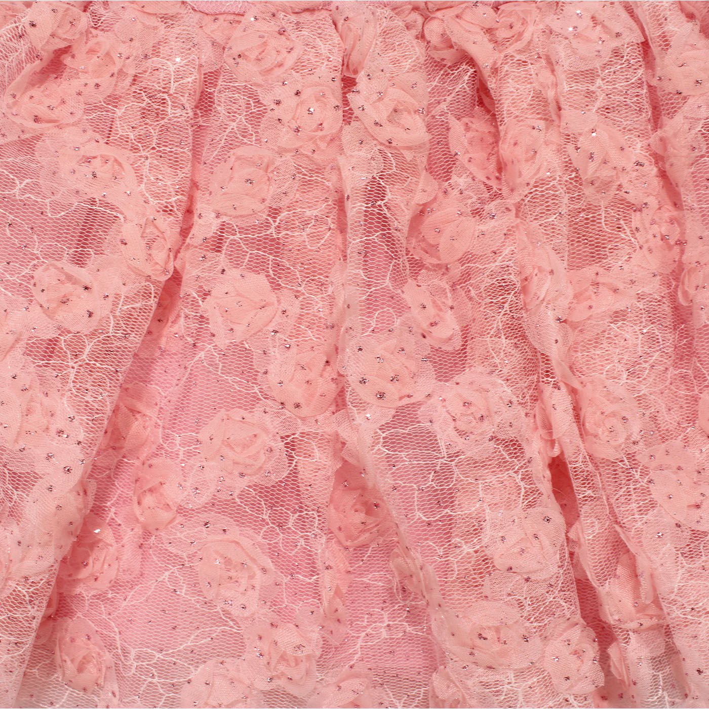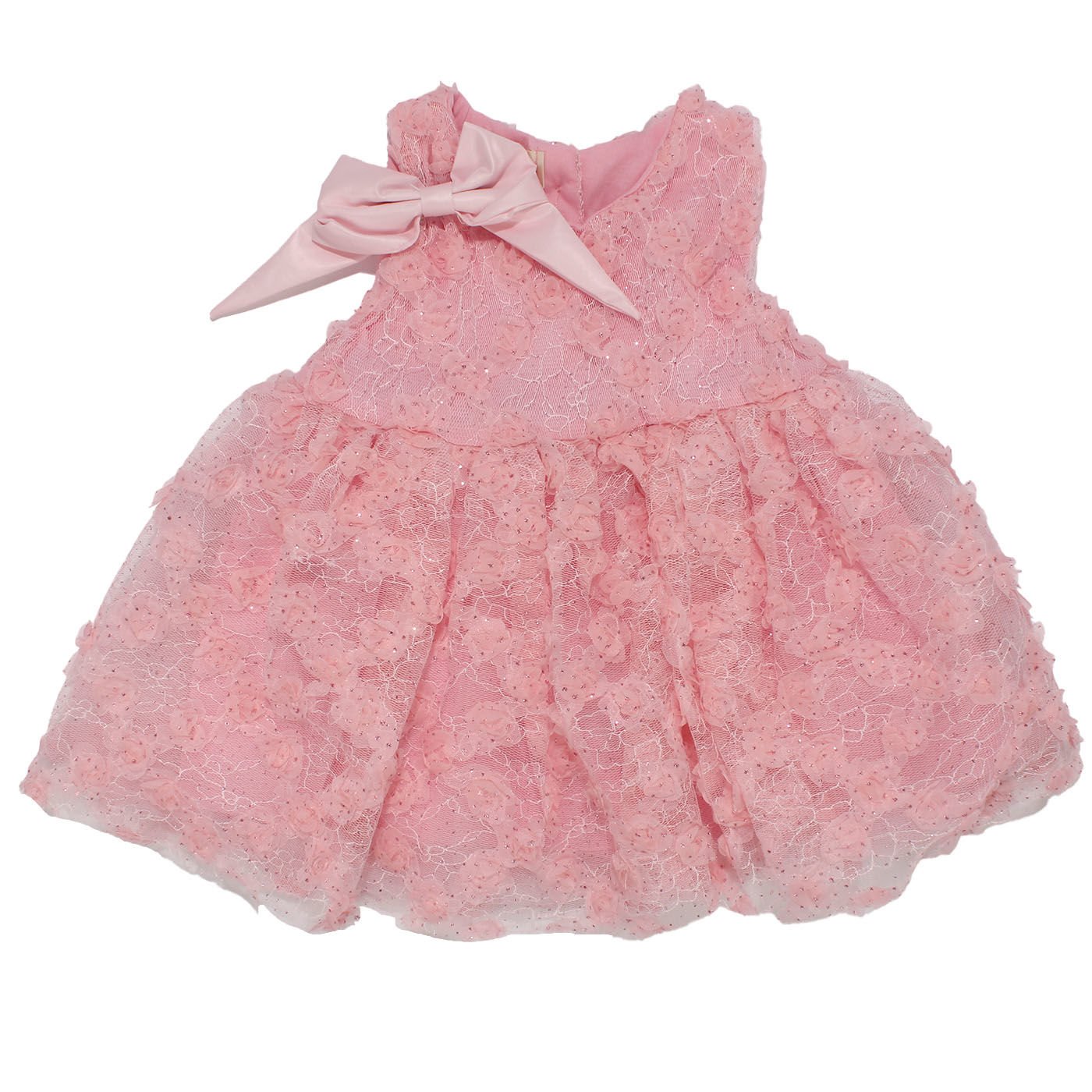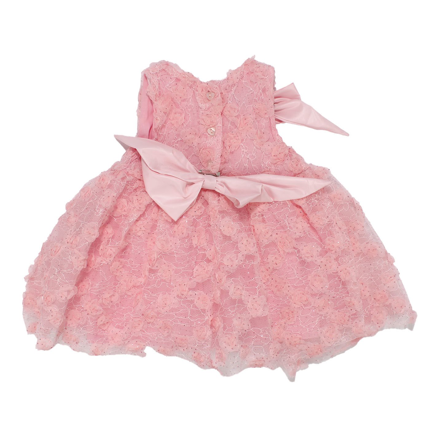 Kız Bebek Pembe Simli Çiçek Motifli Tüllü Fiyonk Tokalı Elbise