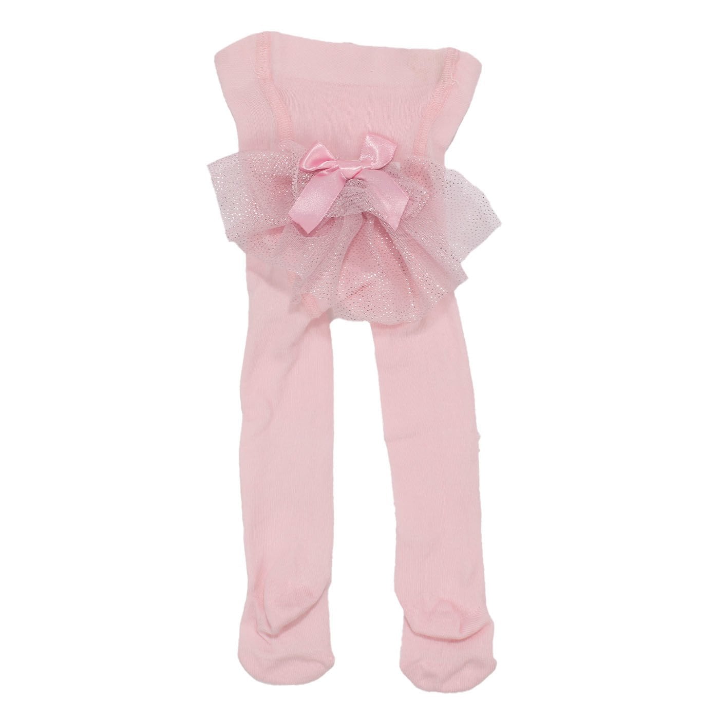 Kız Bebek Pembe Simli Tüllü Fiyonklu Külotlu Çorap 0-6 Ay