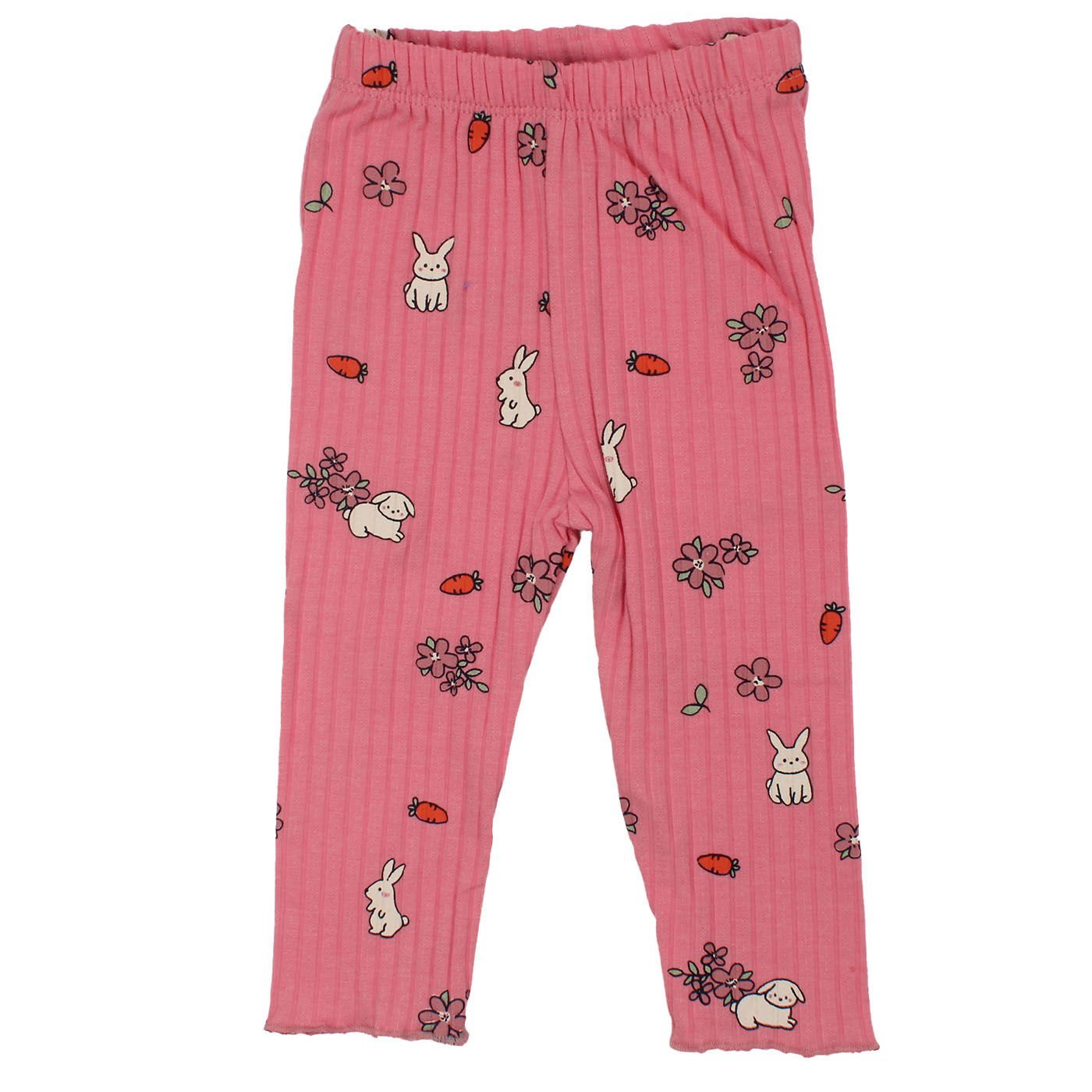 Kız Bebek Pembe Tavşanlı Çiçekli Deseneli Keten Bebe Yakalı İkili Takım