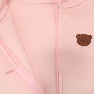 Kız Bebek Pudra Baby Ayıcık Armalı Kapüşonlu 3 İplik Fermuarlı Tulum