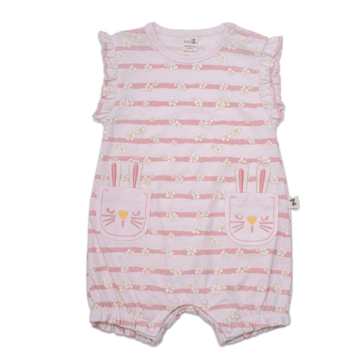 Kız Bebek Pudra Çiçekli Çizgili Cepli Tulum