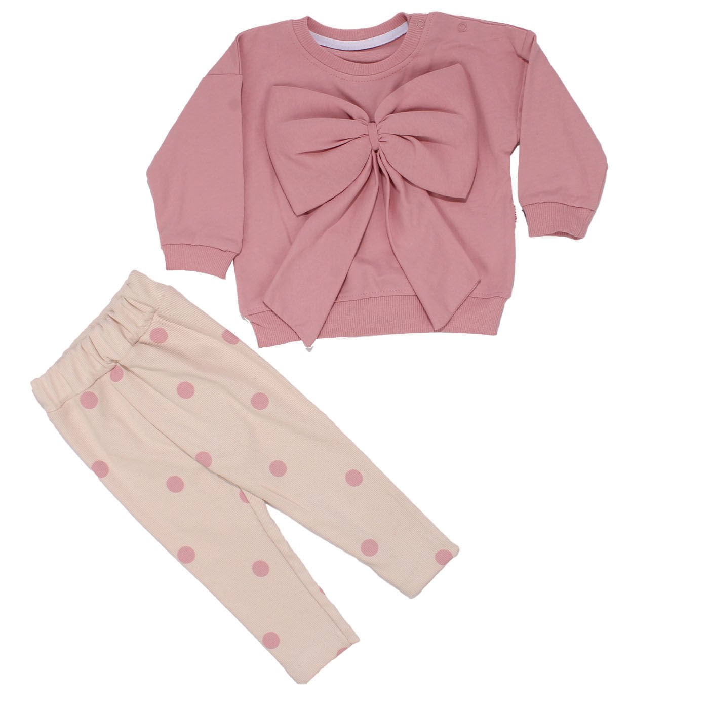 Kız Bebek Pudra Ekru Büyük Fiyonklu Puanlı 2'li Takım