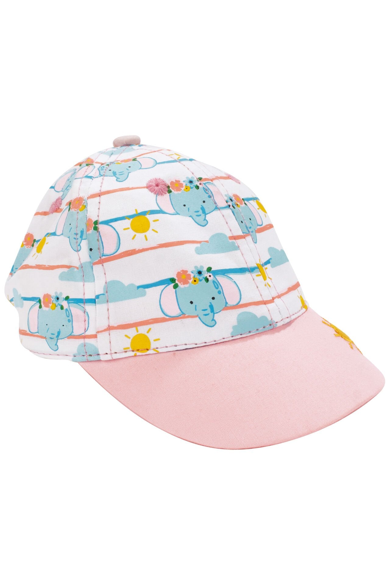 Kız Bebek Pudra Sarı Güneş Nakışlı Fil Desenli Kasket Şapka 0-18 Ay