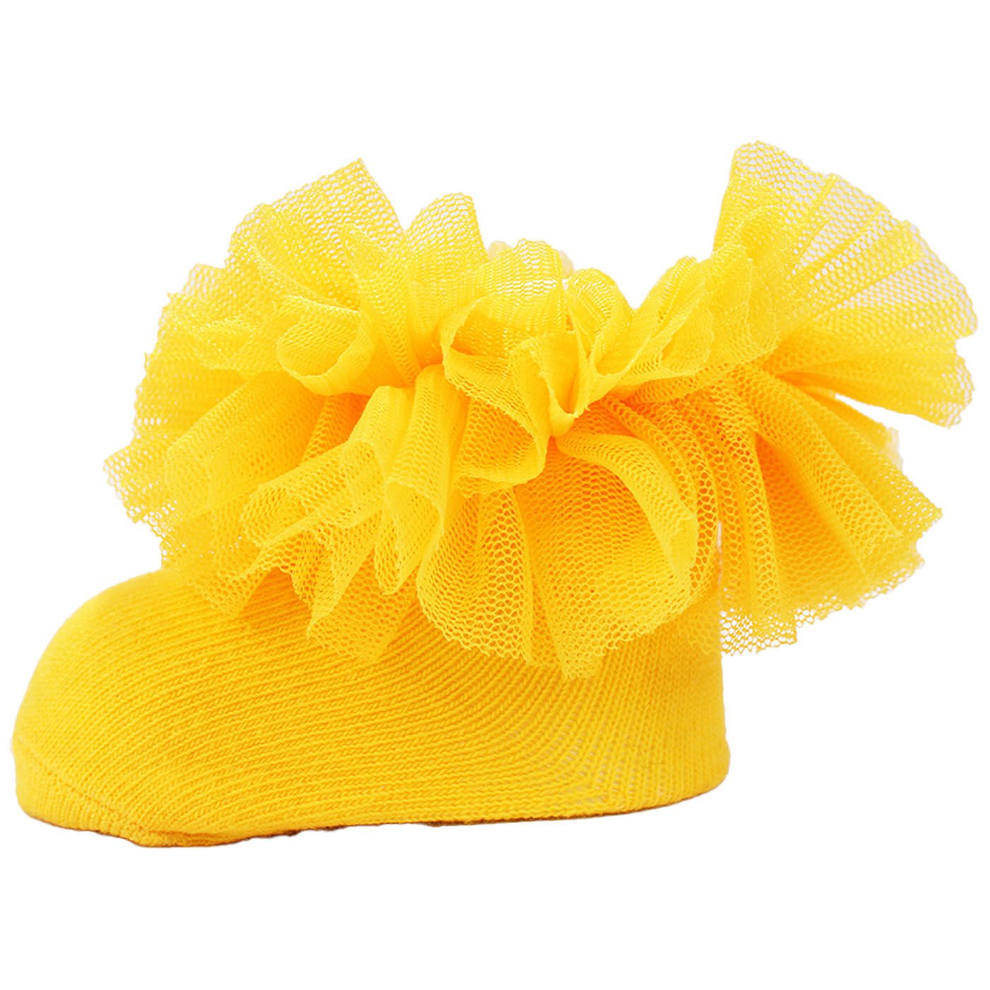 Kız Bebek Sarı Bileği Tüllü Çorap 0-6 Ay
