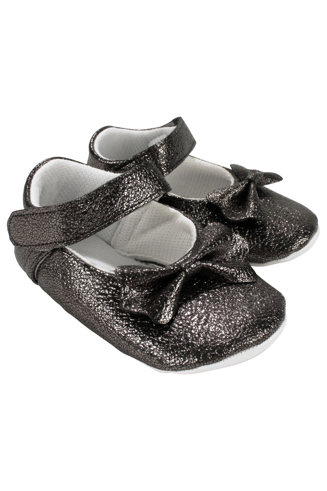 Kız Bebek Siyah Gri Pudra Parlak Fiyonklu Babet Ayakkabı