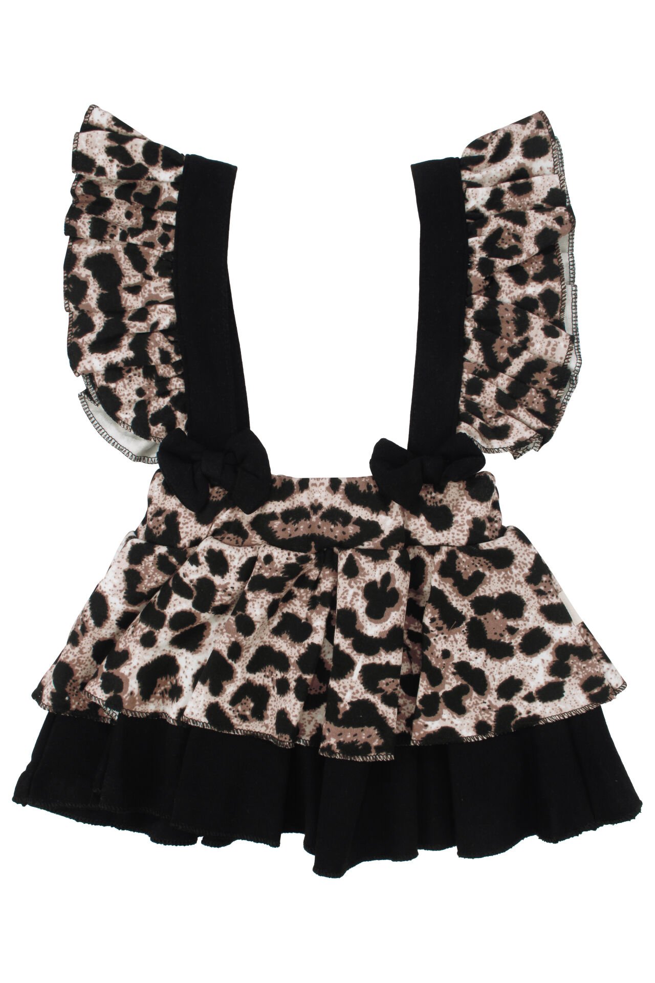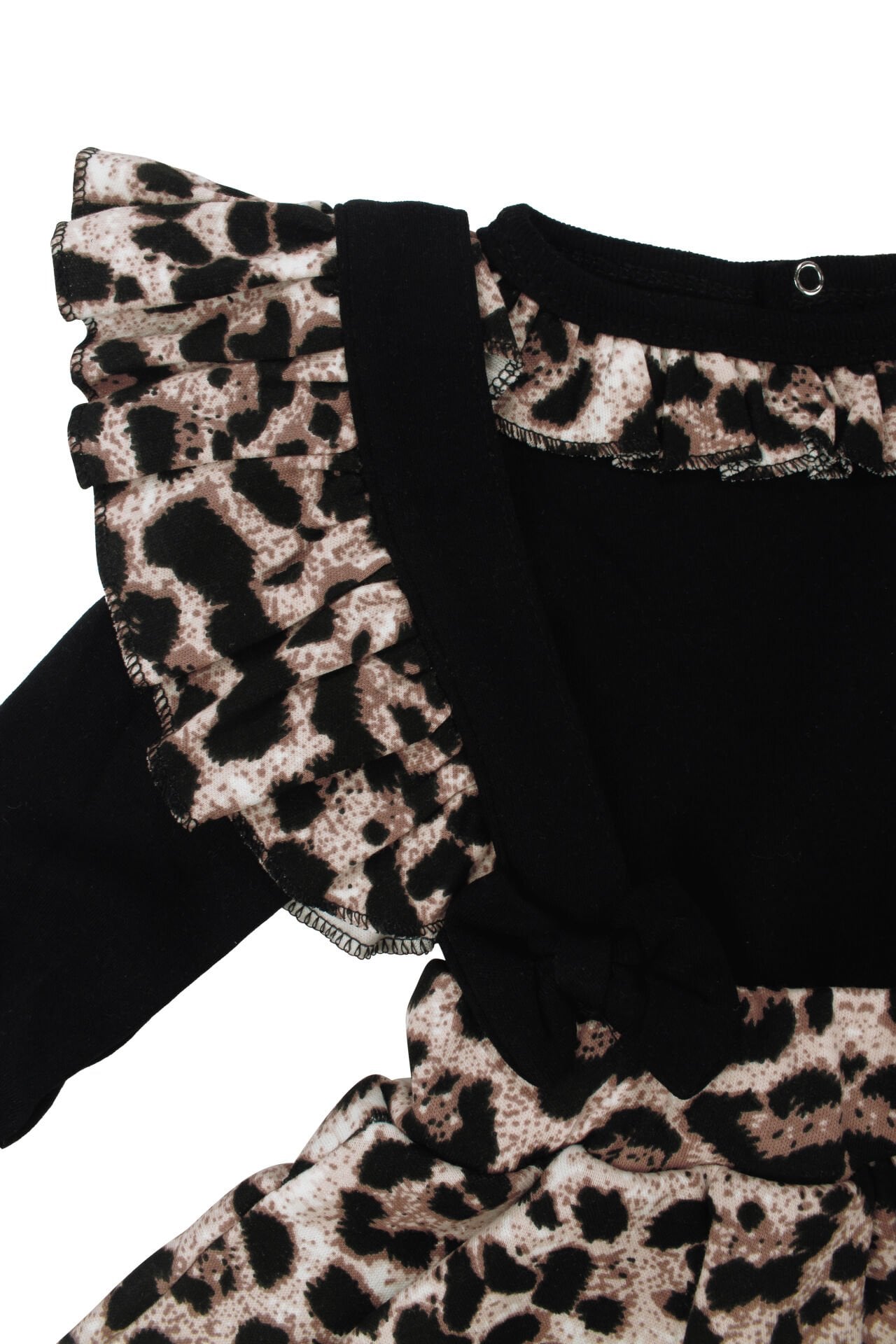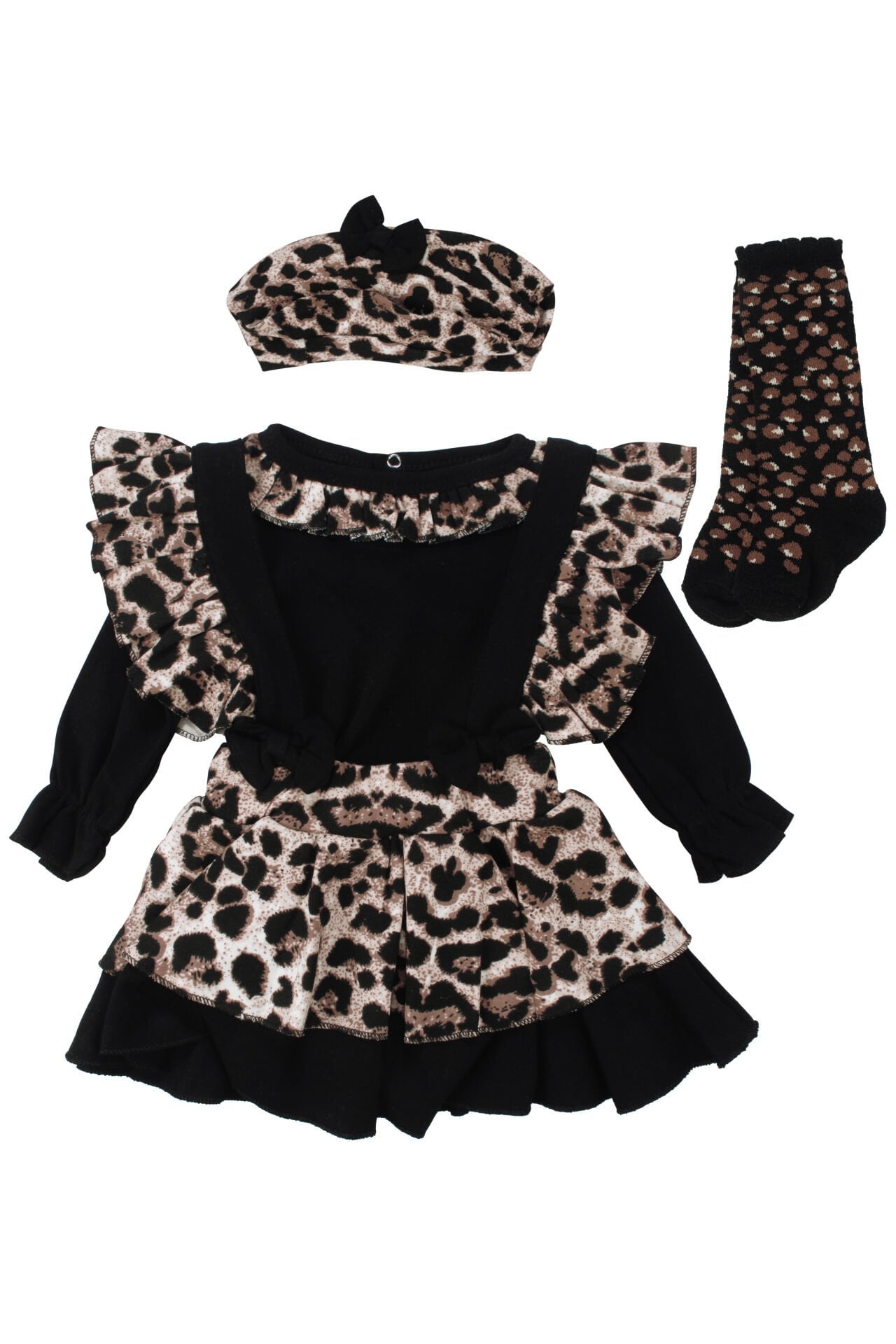 Kız Bebek Siyah Kahve Leopar Desenli Zıbınlı Salopet 4'lü Takım