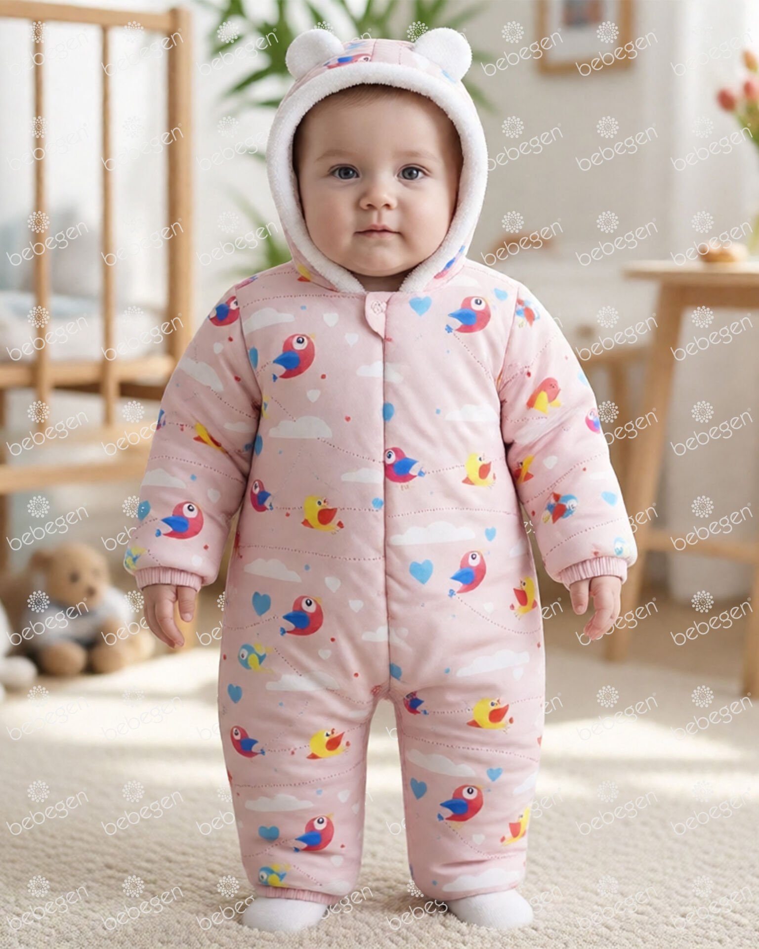 Kız Bebek Somon Kozmonot Ayaksız Tulum