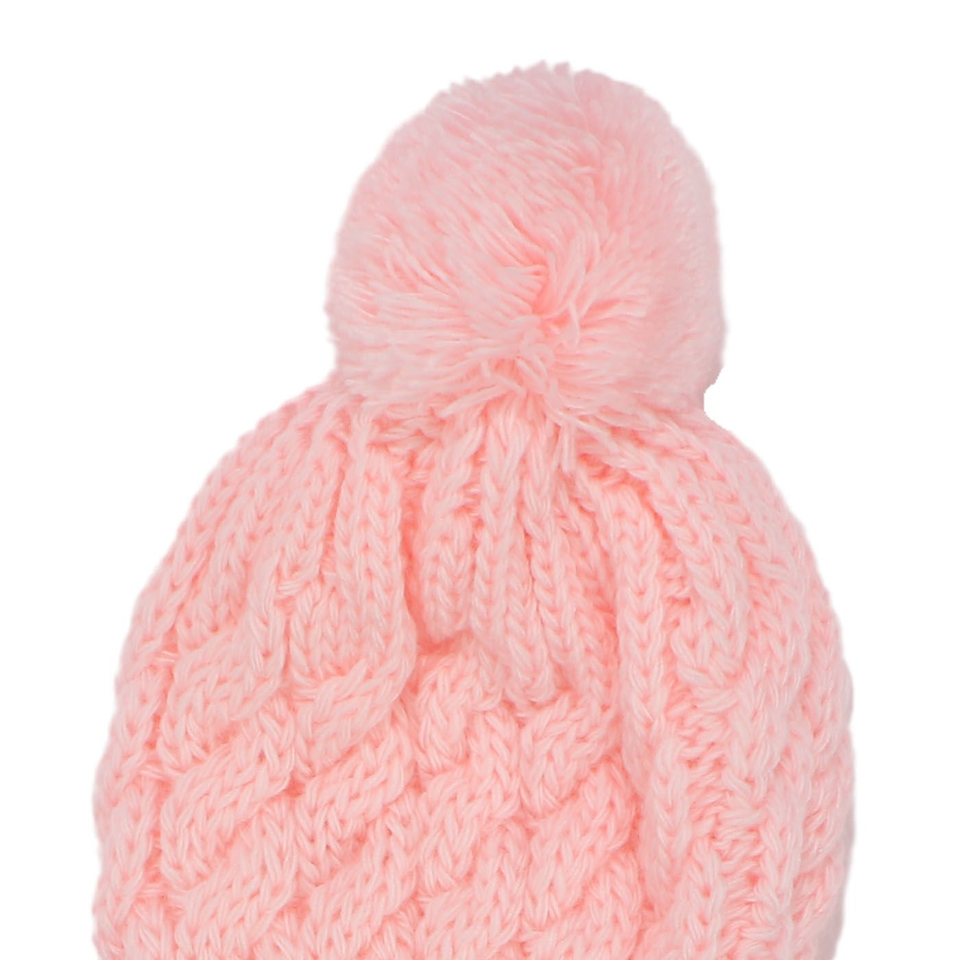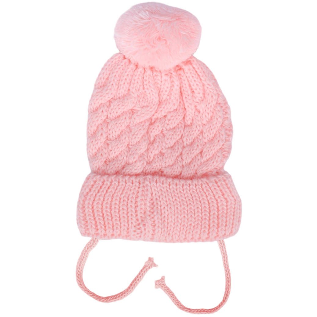 Kız Bebek Somon Saç Örgülü Ponponlu İpli Triko Bere 0-6 Ay