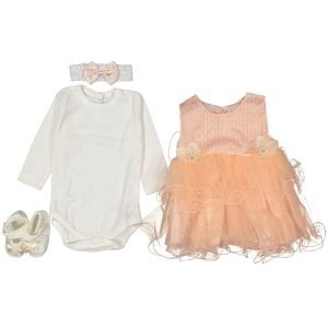 Kız Bebek Somon Tüllü Fırfırlı İncili 4 Parça Mevlüt Takımı 0-6 Ay
