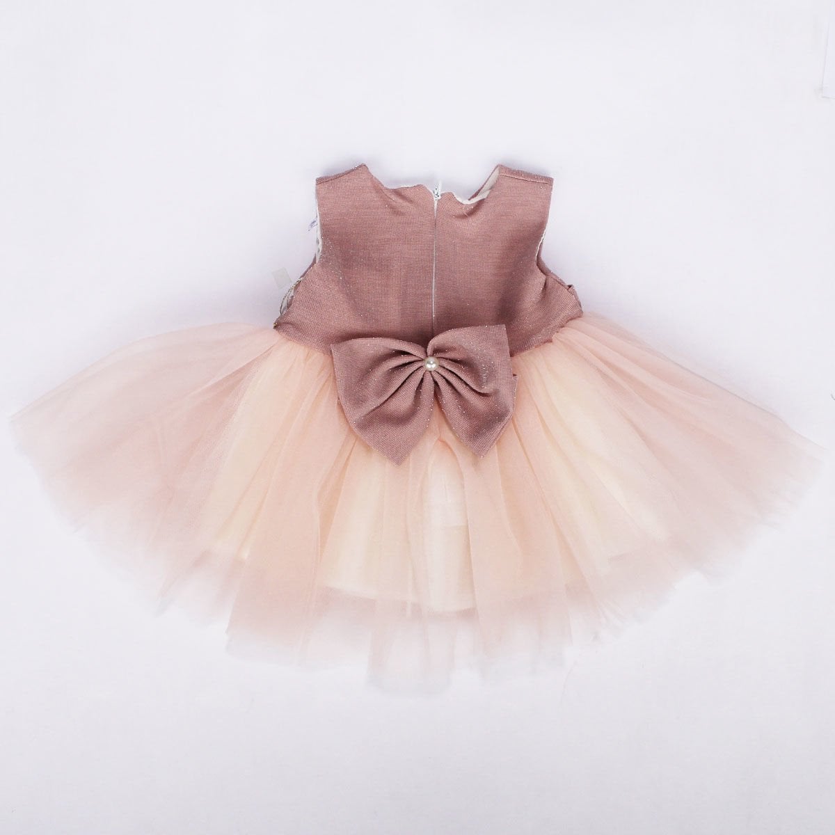Kız Bebek Somon Tüllü Fiyonklu Elbise