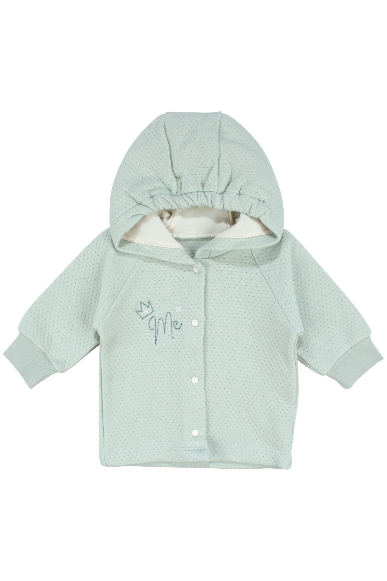 Kız Bebek Su Yeşili Kapitoneli Kapüşonlı Çıtçıtlı Me Nakışlı Hırka