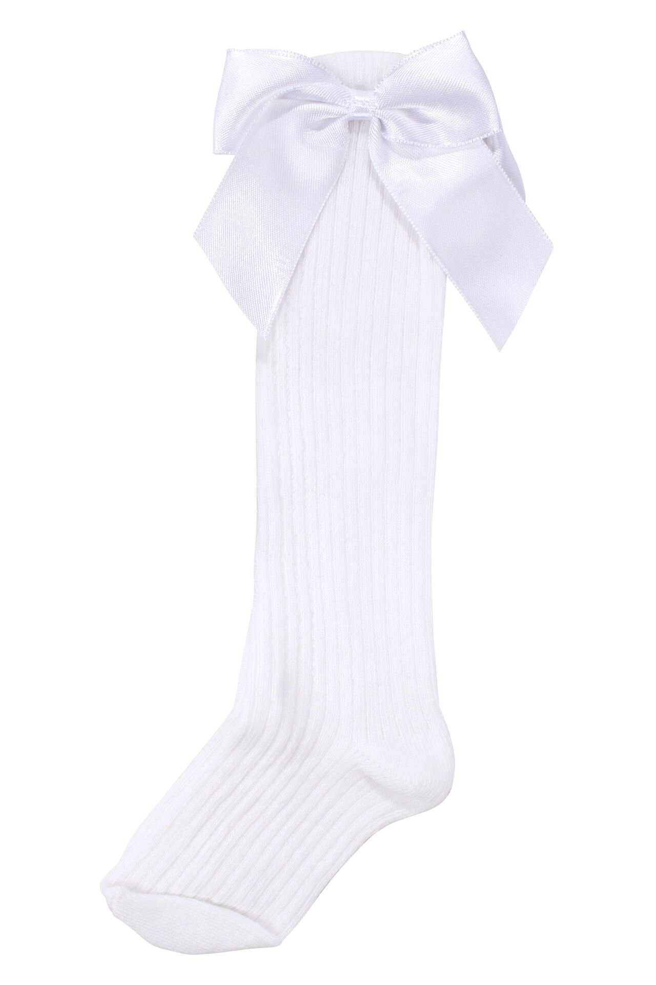 Şıklığı ve rahatlığı bir arada sunan bu diz altı çorap, beyaz rengi ve kurdale fiyonklu tasarımı ile kız çocuklarına zarif ve sevimli bir görünüm sağlar. Yumuşak ve esnek kumaşı, ayak ve bacaklarda konfor sunarak günlük kullanım için idealdir.