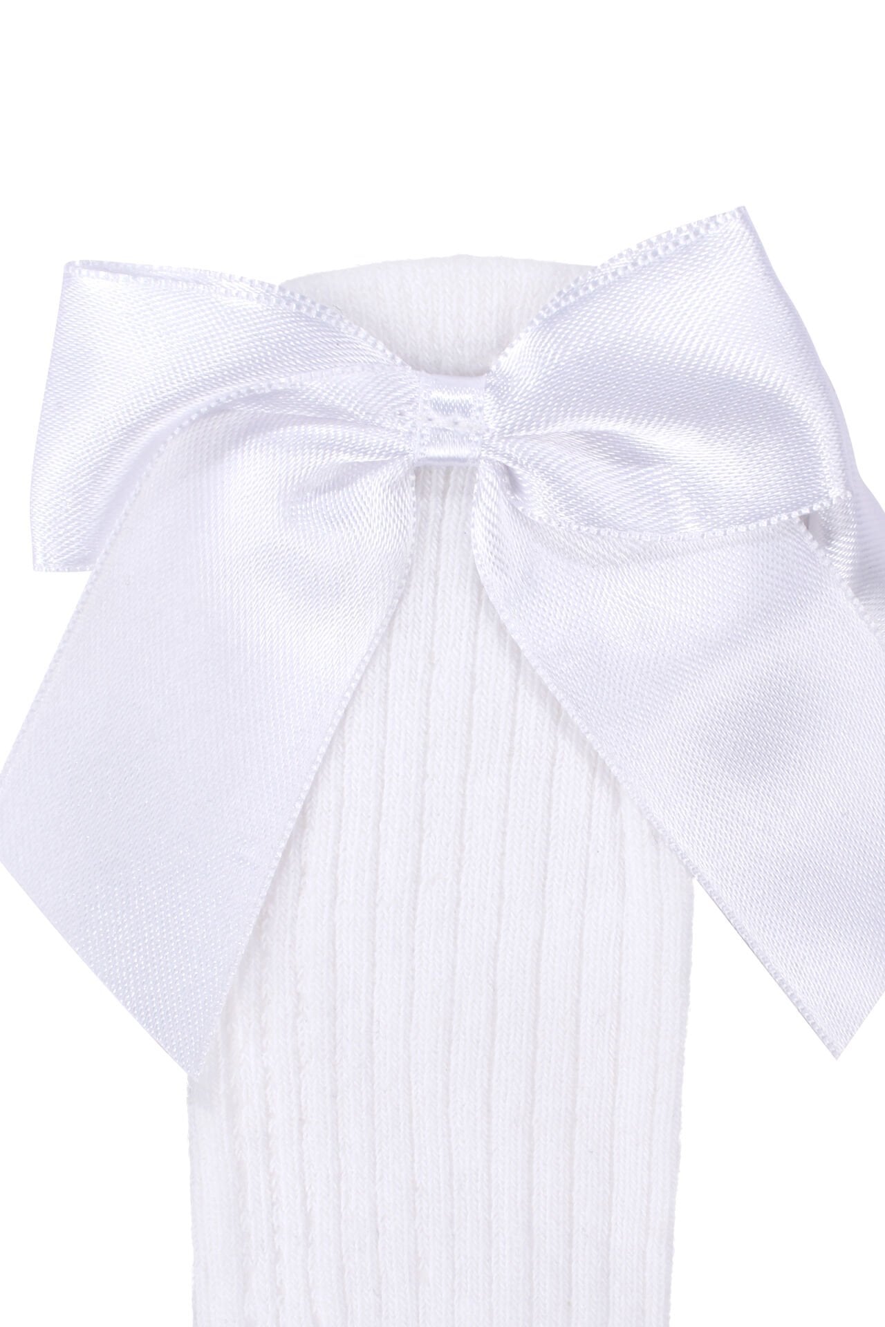 Kız Çocuk Beyaz Kurdale Fiyonklu Diz Altı Çorap