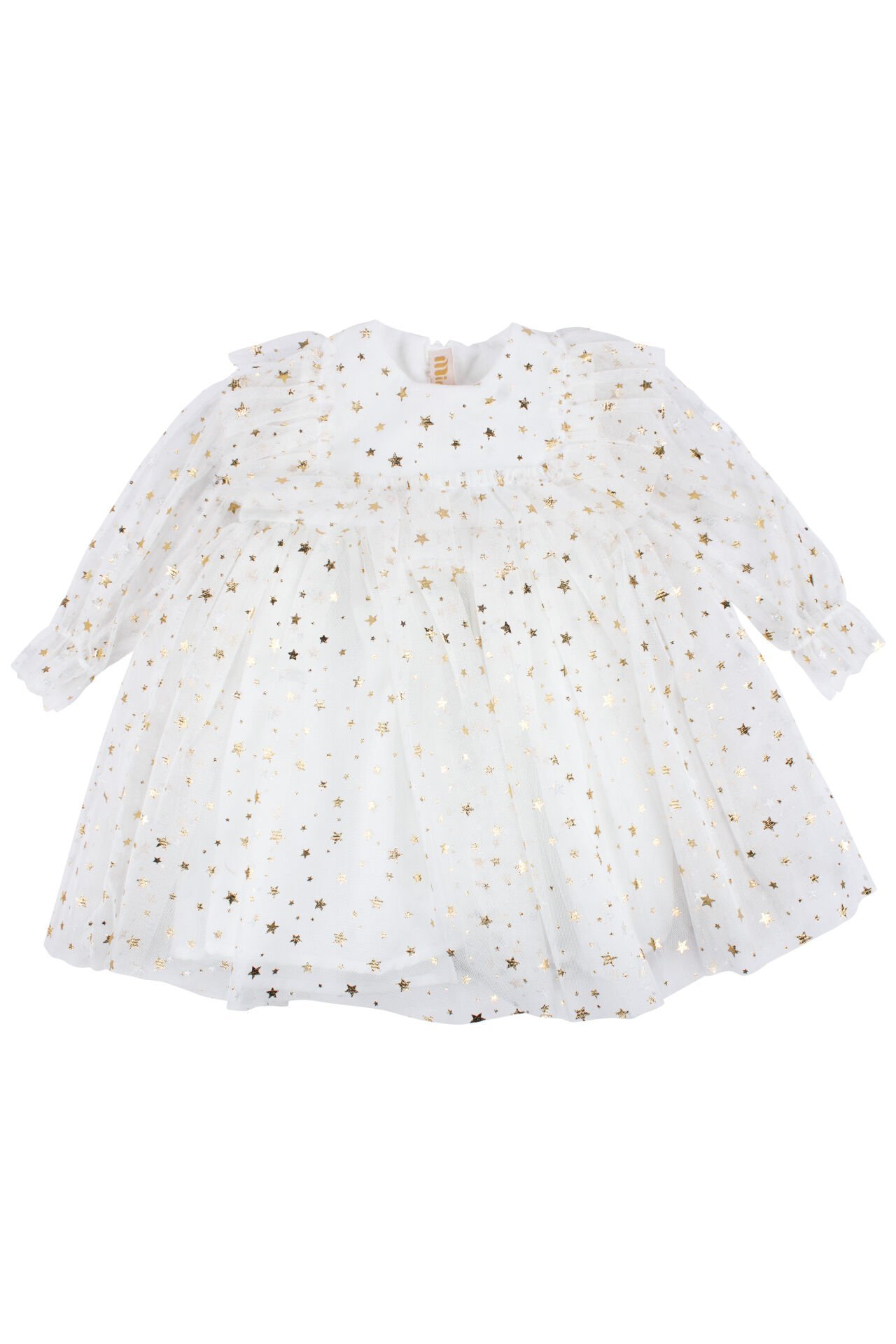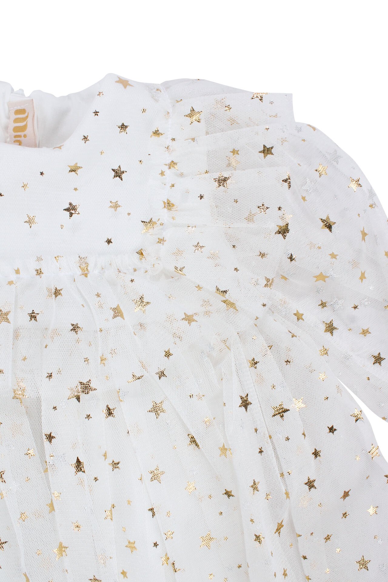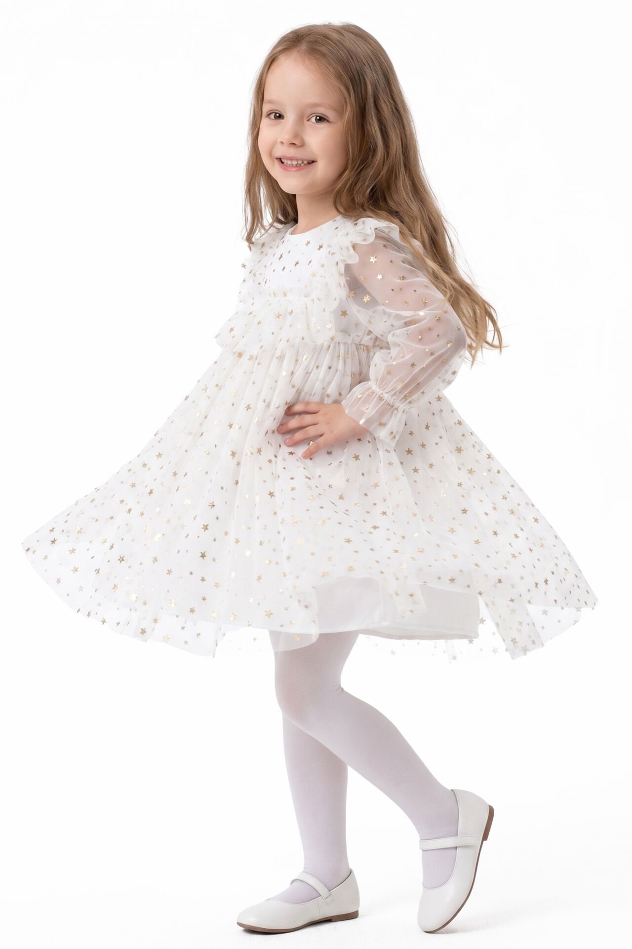 Kız Çocuk Ekru Gold Yıldız Desenli Tüllü Elbise