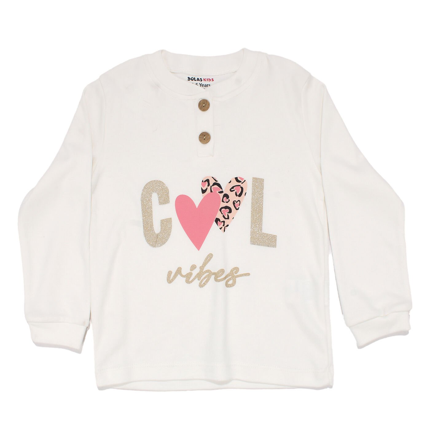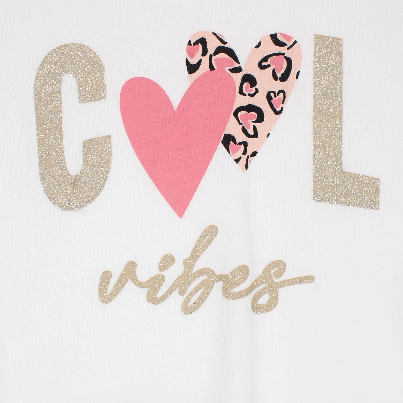 Kız Çocuk Ekru Pembe Cool Kalp Baskılı 2'li Pijama Takımı