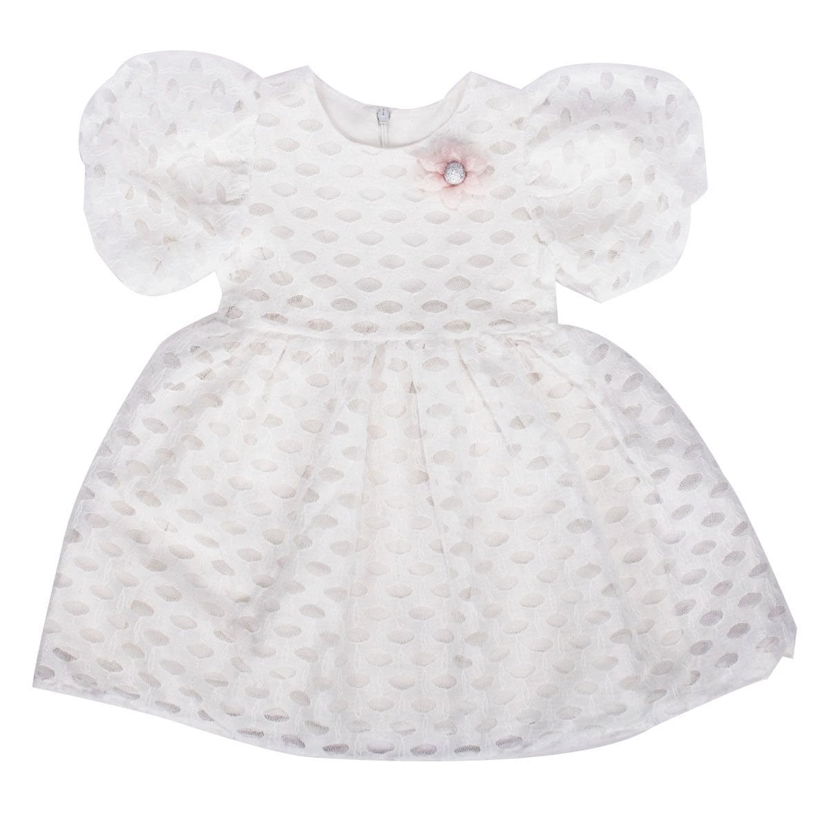 Kız Çocuk Ekru Tüllü Benekli Yaka Çicekli Elbise