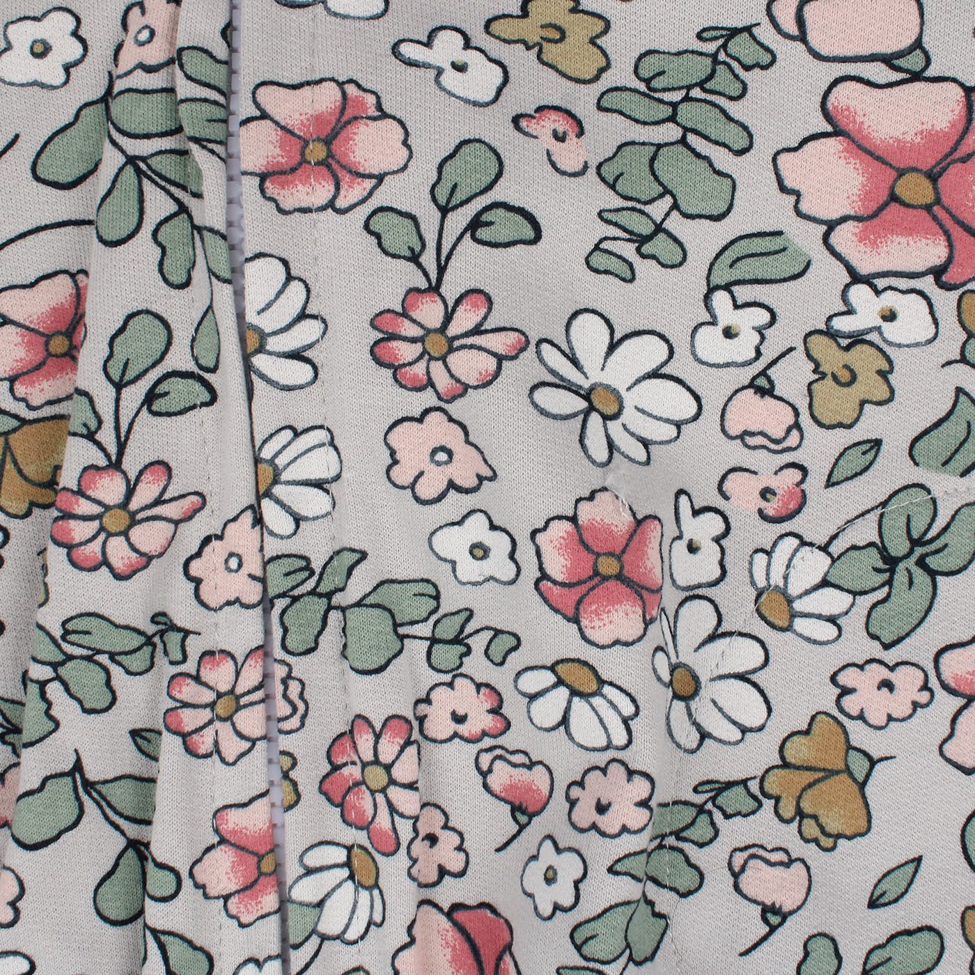 Kız Çocuk Gri Çiçekli Desenli Kapşonlu Hırka