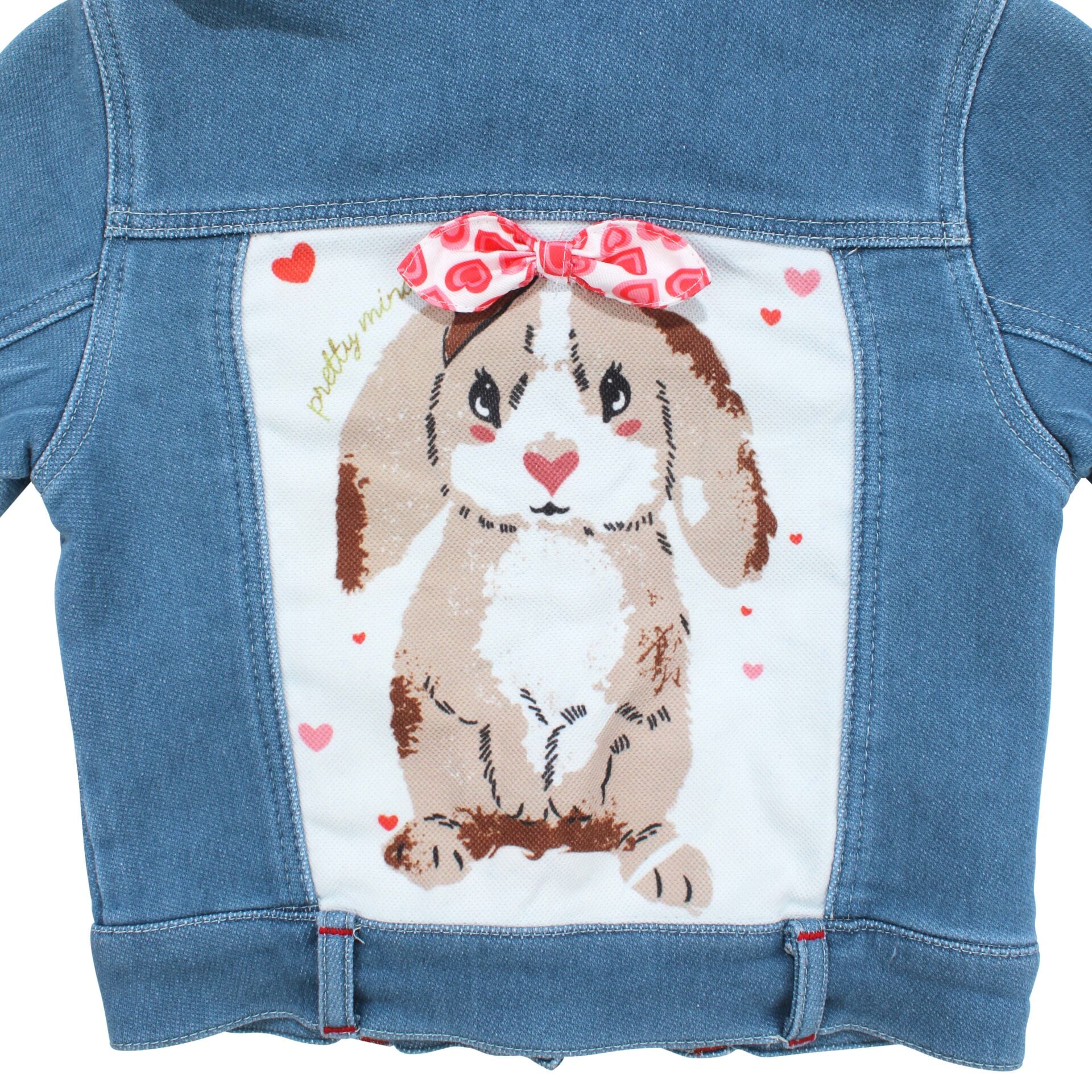 Kız Çocuk Mavi Kot Arkası Tavşan Baskılı Ceket