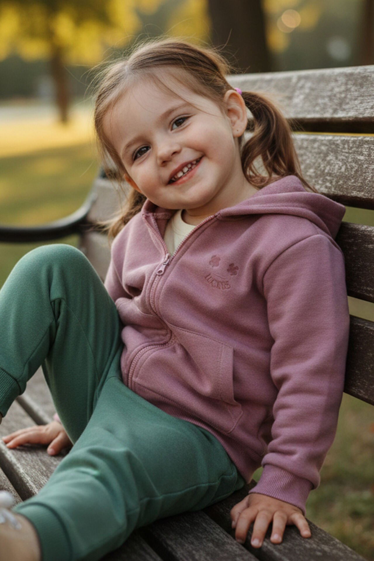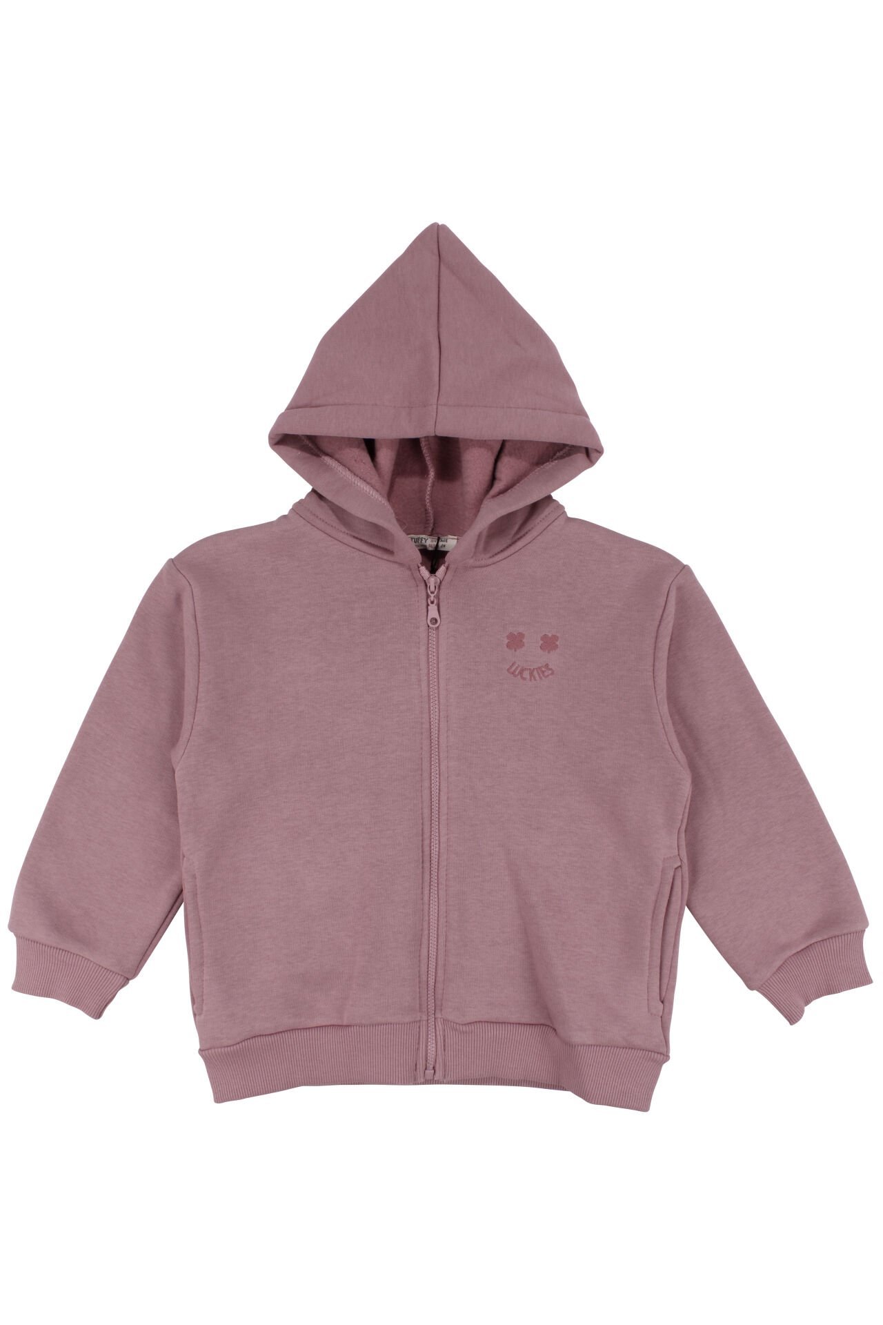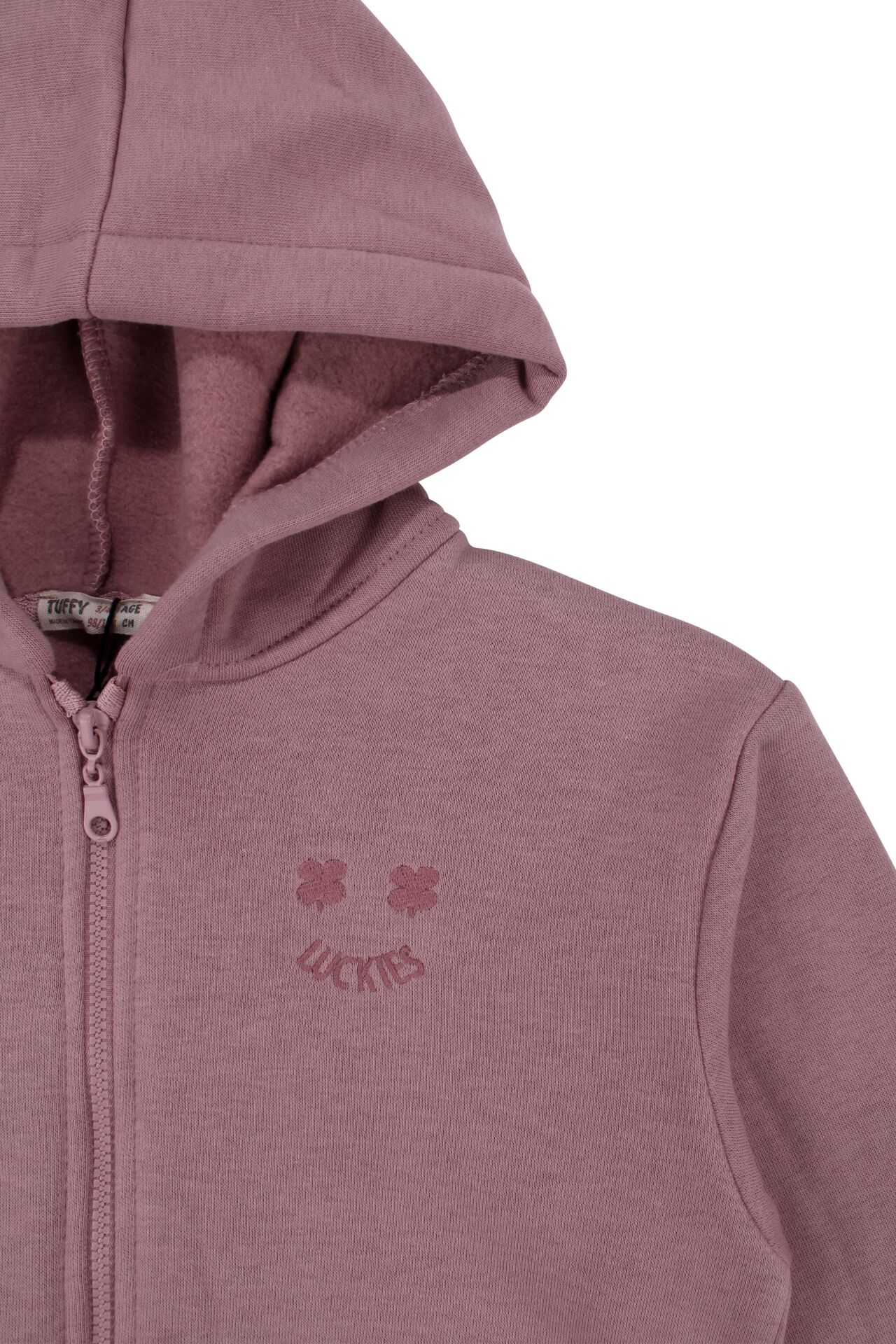 Kız Cocuk Mürdüm Luckies Yazılı 3 İp Kapüşonlu Hırka