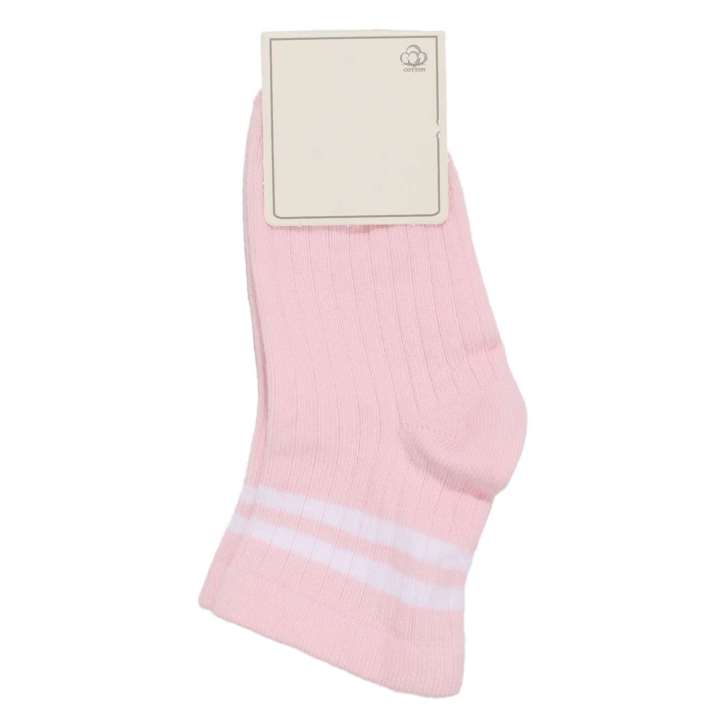 Kız Çocuk Pembe Beyaz Çizgli Çorap