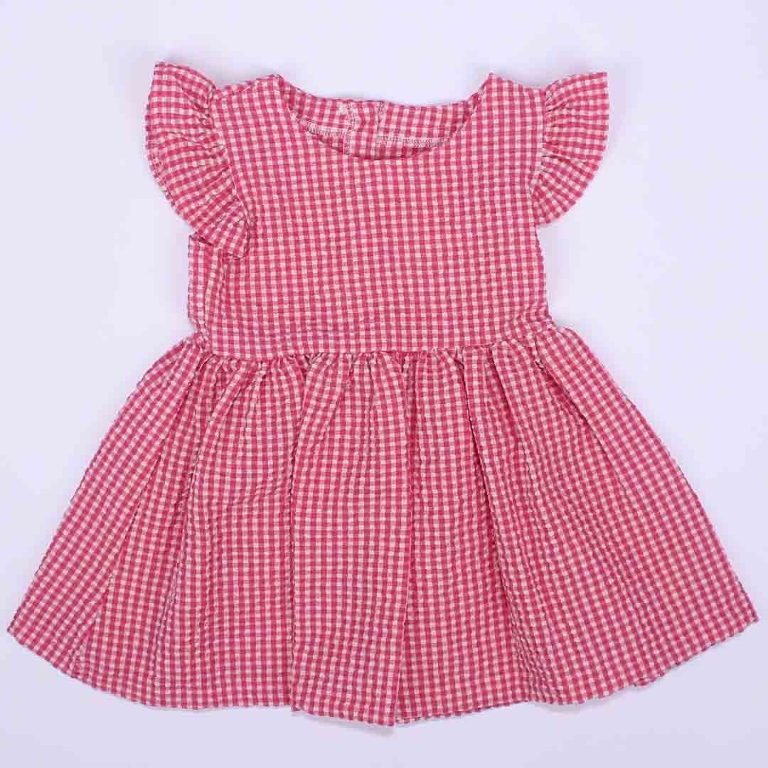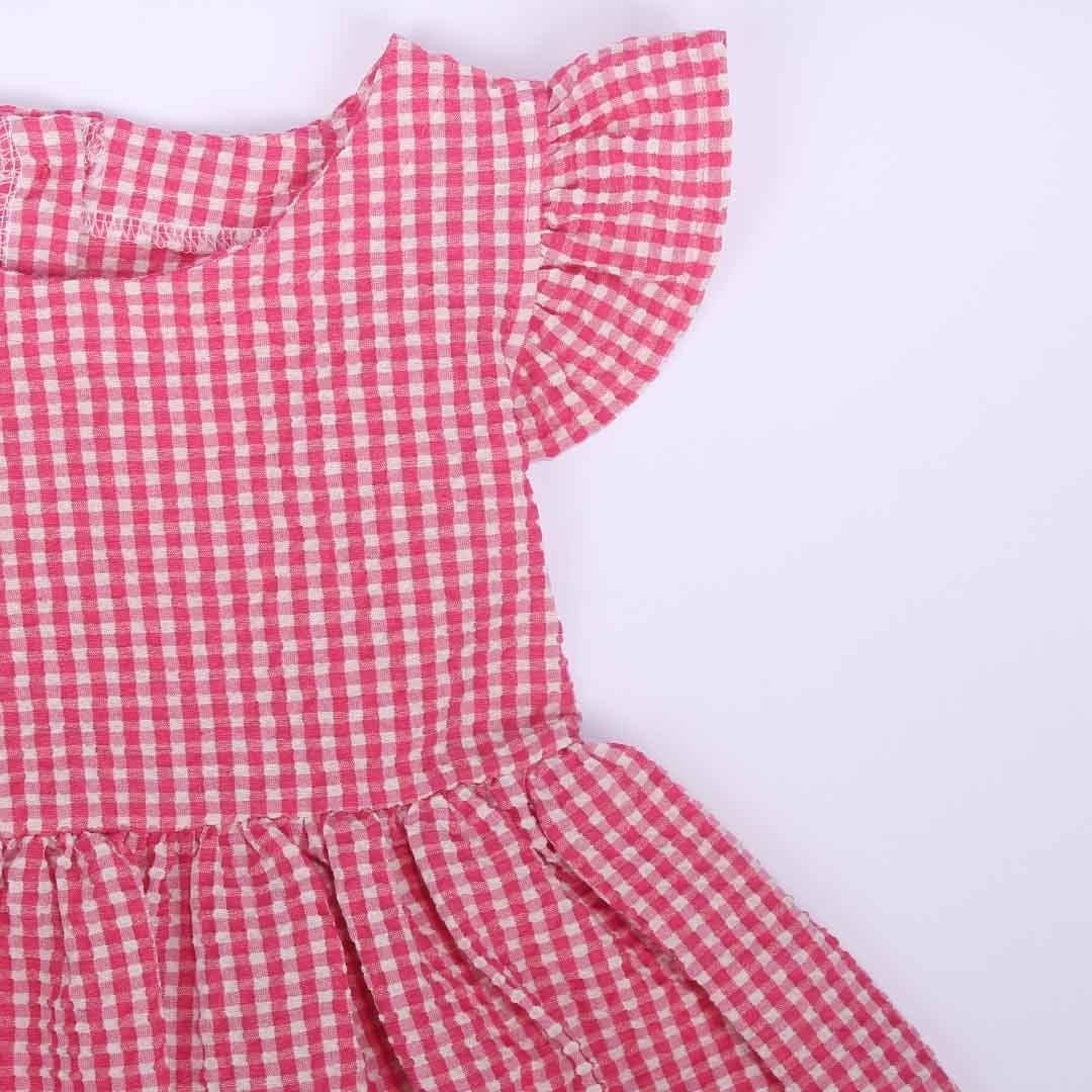 Kız Çocuk Pembe Pitikare Gofre Fırfırlı Elbise