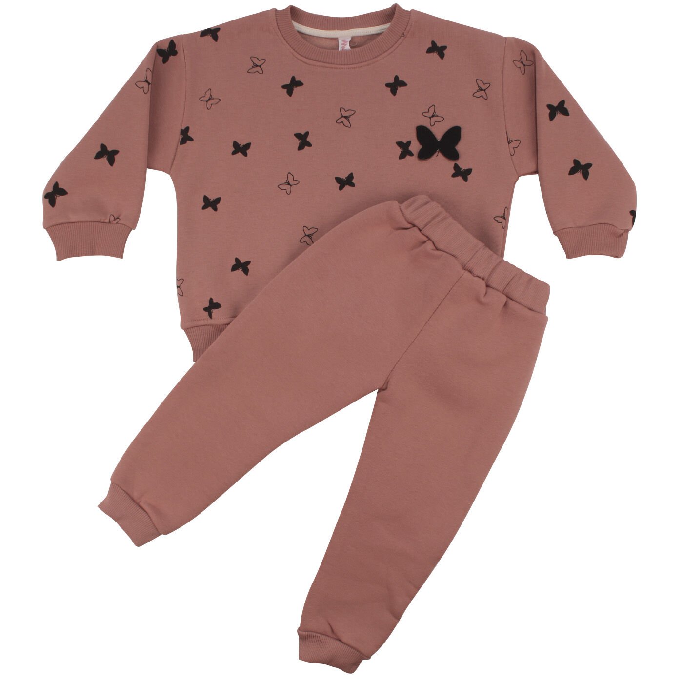 Minik kızlar için tasarlanmış Kız Çocuk Pudra Siyah Kelebek Baskılı Üç İp İkili Takım, hem rahat hem şık bir kombin sunar. Yumuşak ve esnek üç ip kumaşı, çocukların hareket özgürlüğünü kısıtlamadan maksimum konfor sağlar.