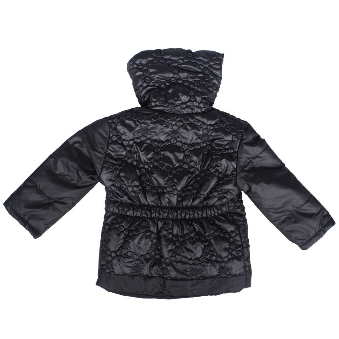 Kız Çocuk Siyah Belden Lastikli Kendinden Desenli Şişme Mont