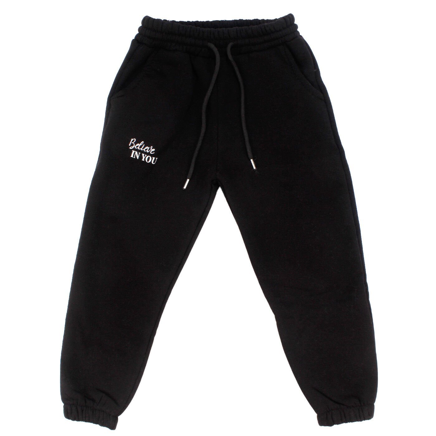 Kız Çocuk Siyah Believe In You Yazılı Üç İp Eşofman Tek Alt