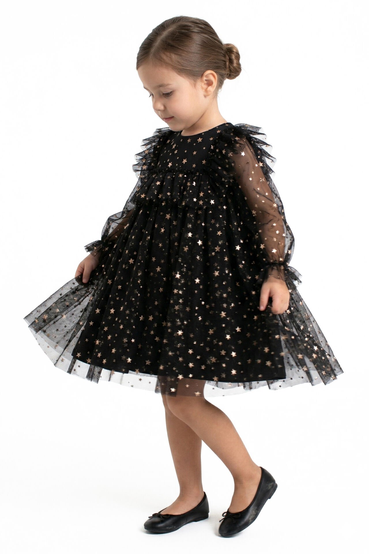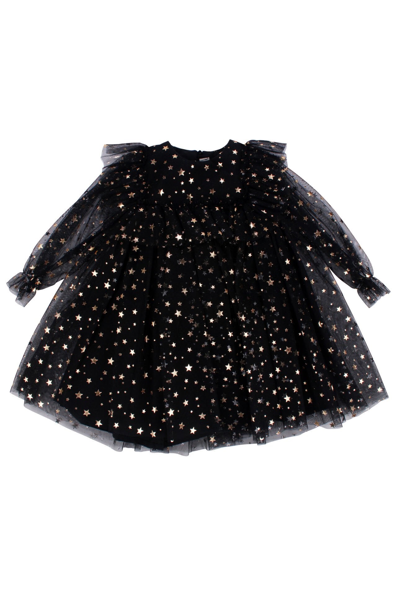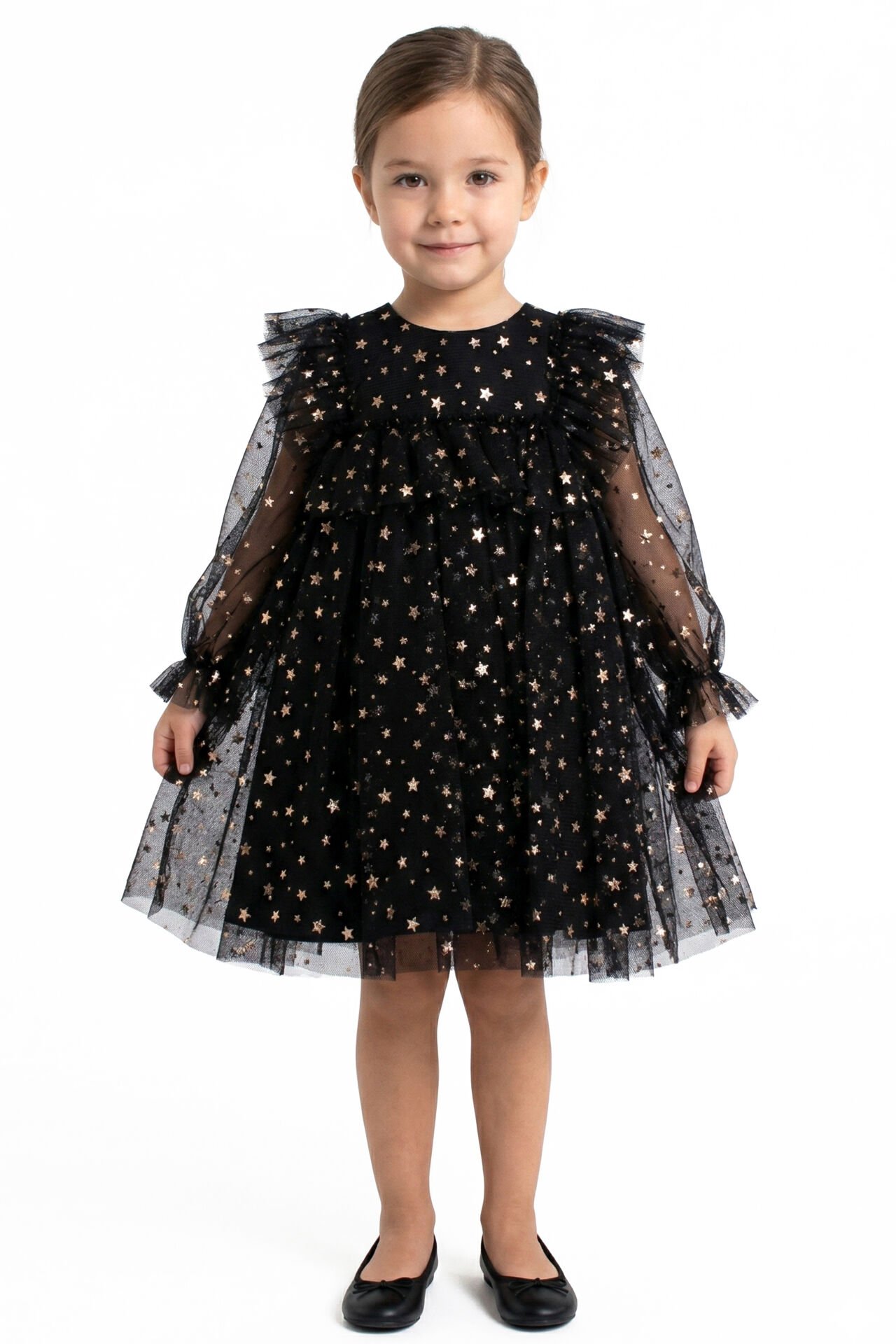 Kız Çocuk Siyah Gold Yıldız Desenli Tüllü Elbise