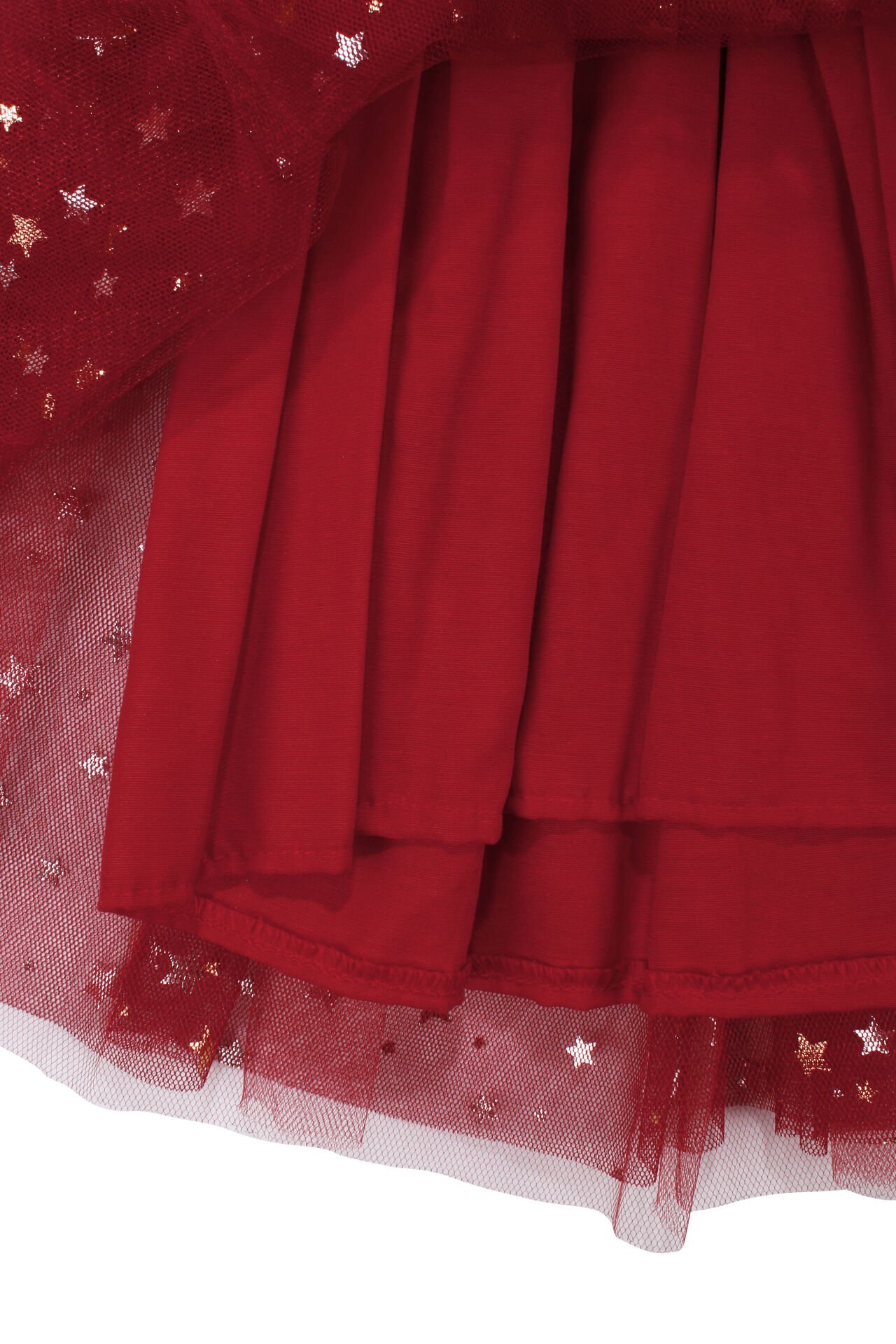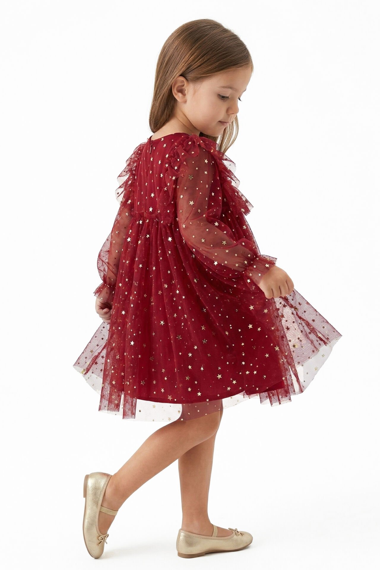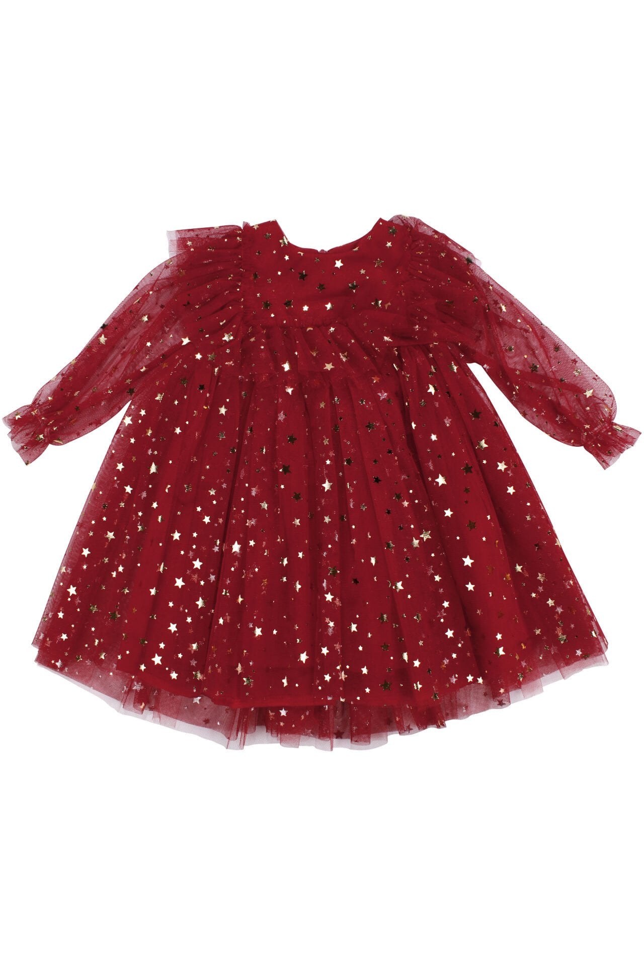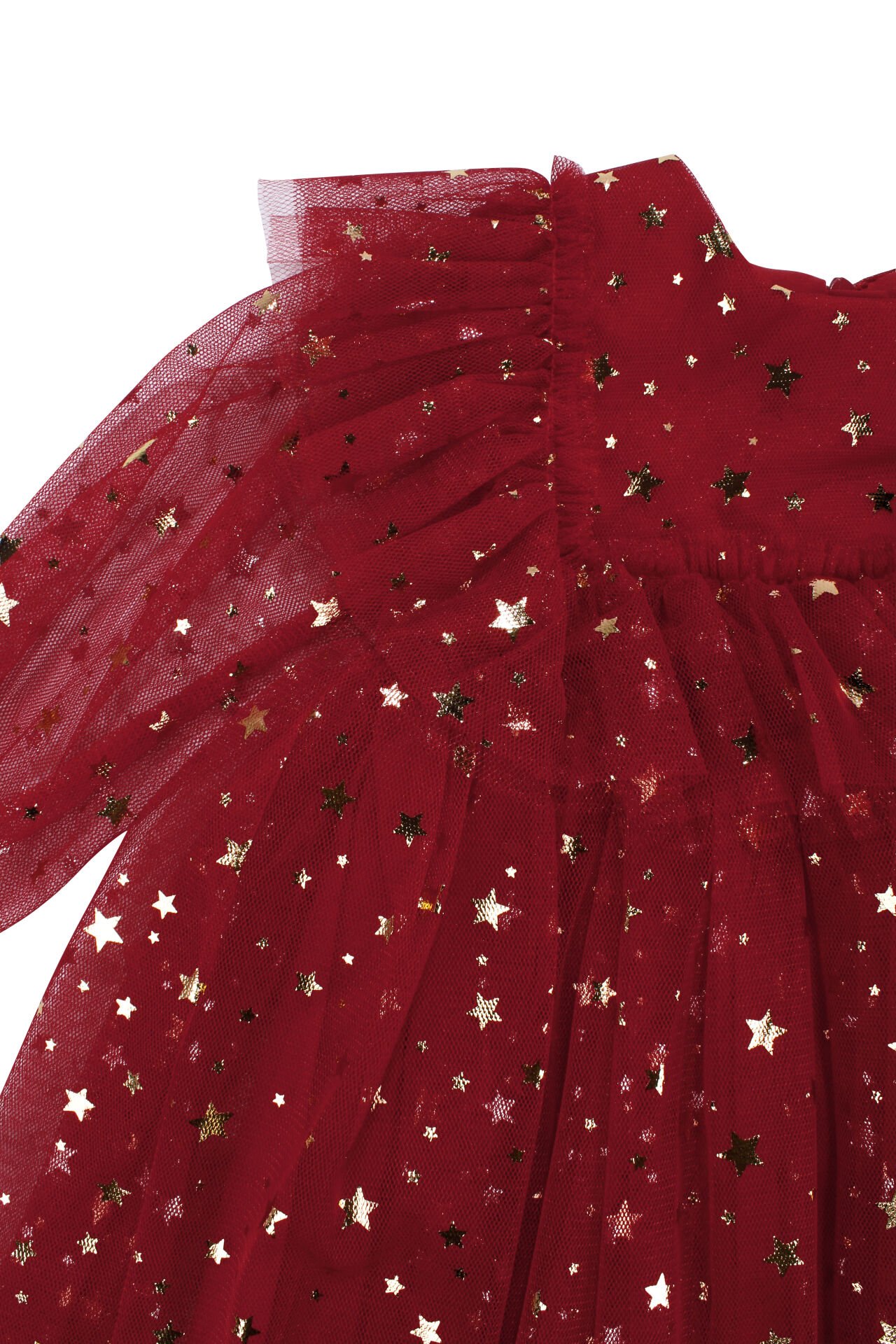 Kız Çocuk Kırmızı Gold Yıldız Desenli Tüllü Elbise