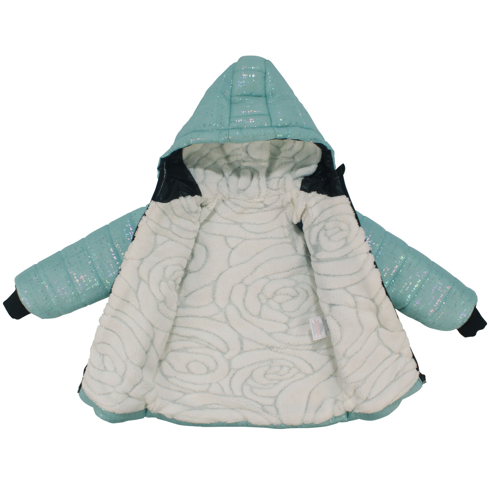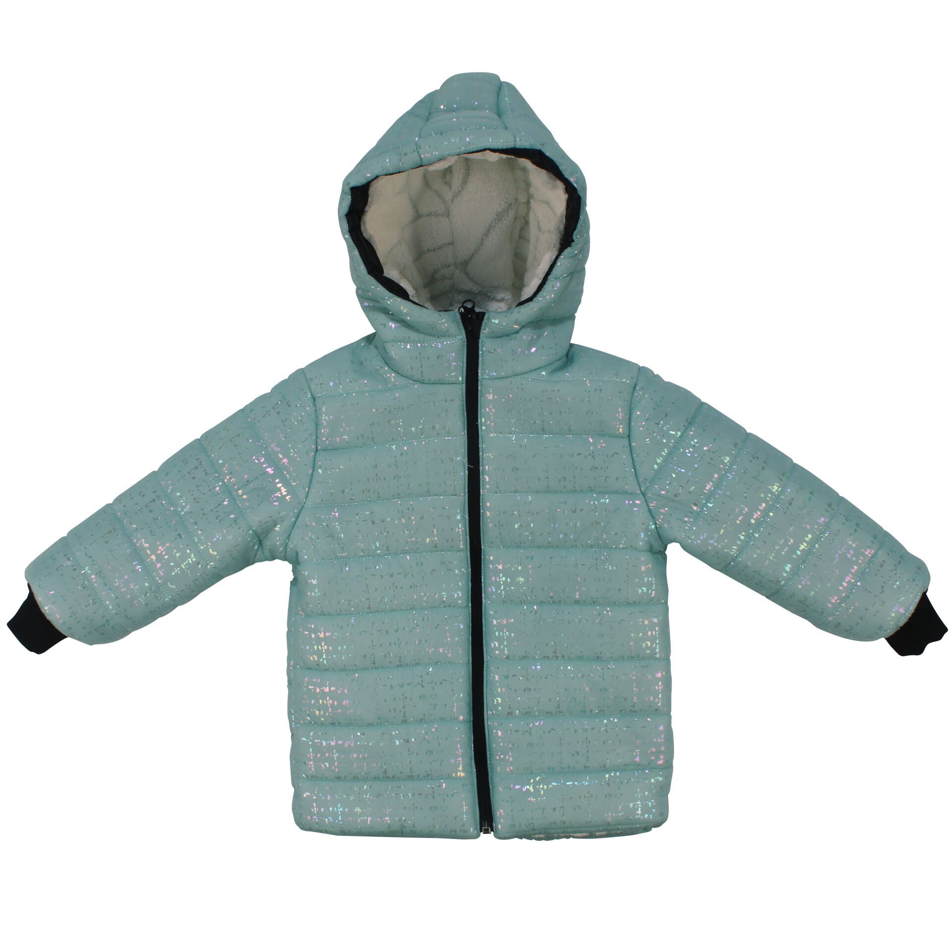 Kız Çocuk Su Yeşili Simli Parlak İçi Peluş Mont