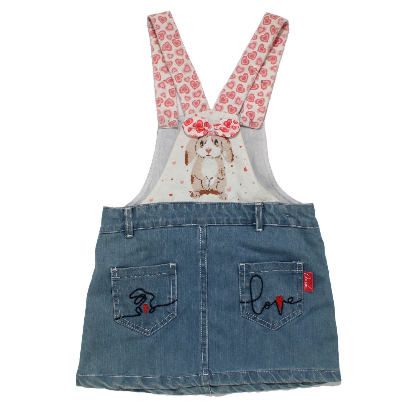 Kız Çocuk Tavşan Baskılı Mavi Kot Salopet