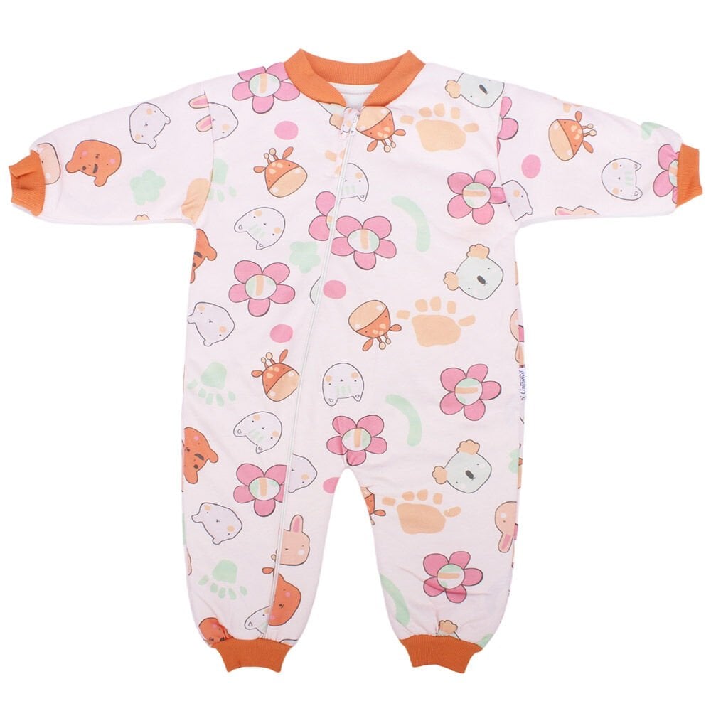 Kız Çocuk Turuncu Çiçek Hayvan Desenli Uyku Tulumu