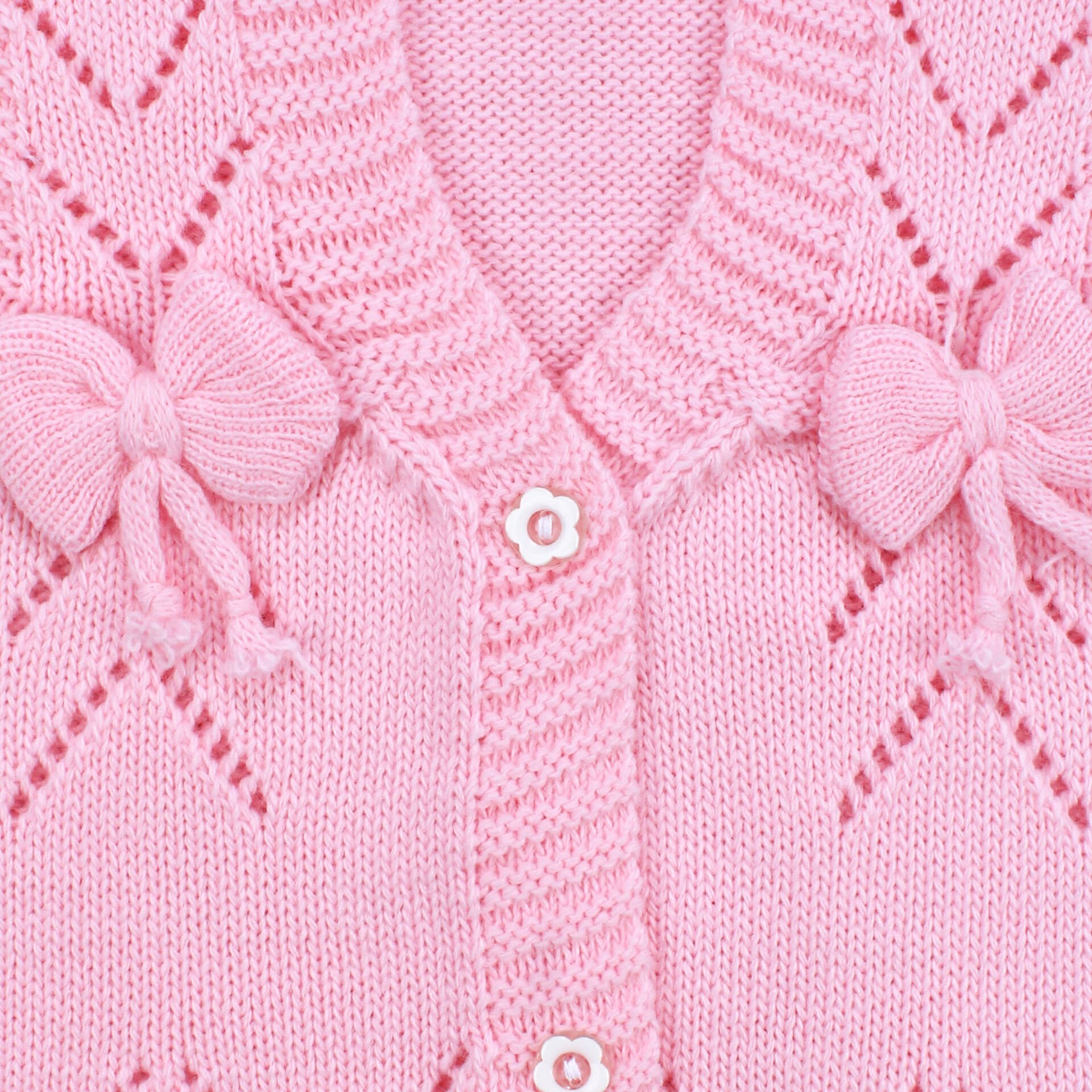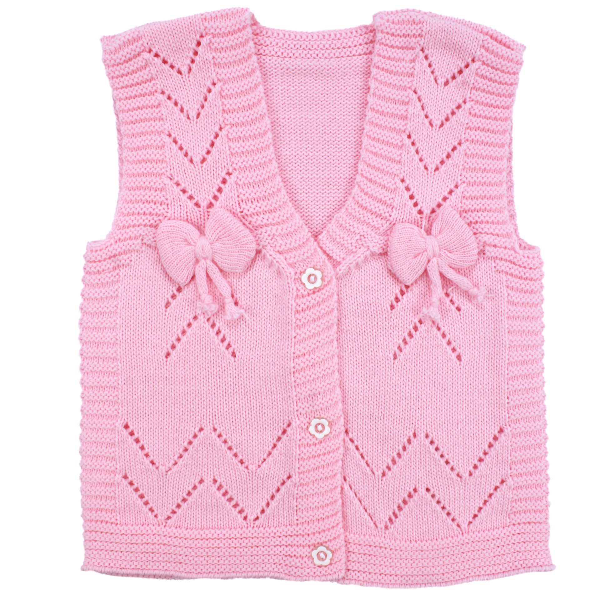 Lüx Pembe Kurdeleli Kız Bebek Triko Yelek