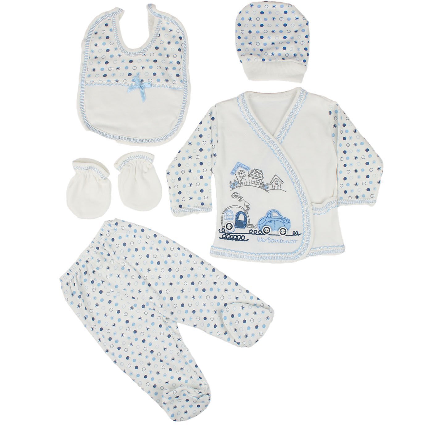 Mavi Arabalı Puanlı 5 Parça Hastane Çıkış Seti